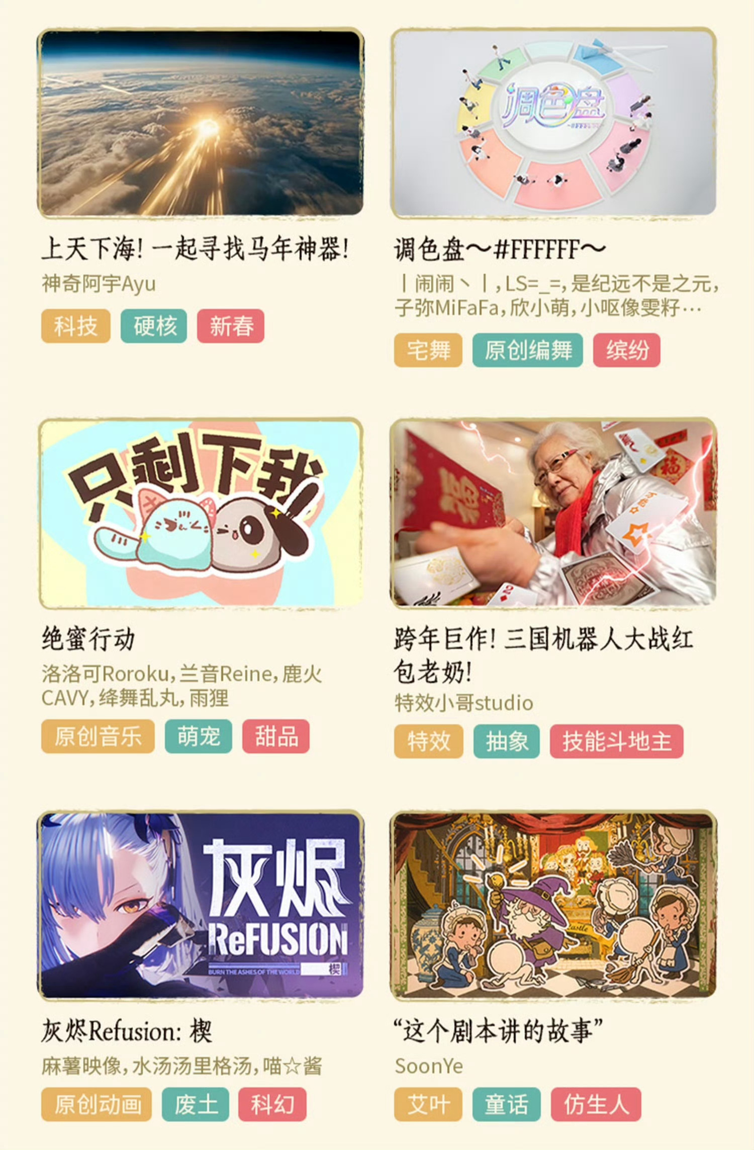 二次元春晚节目单啊啊啊节目单也太顶了吧!国风舞台+脑洞动画短片,还有洛天依新歌《辟浪》和凡人二创曲,这阵容光是看着就热血沸腾了!李常超、屠洪纲这些大佬也来加码,快乐密度直接拉满!