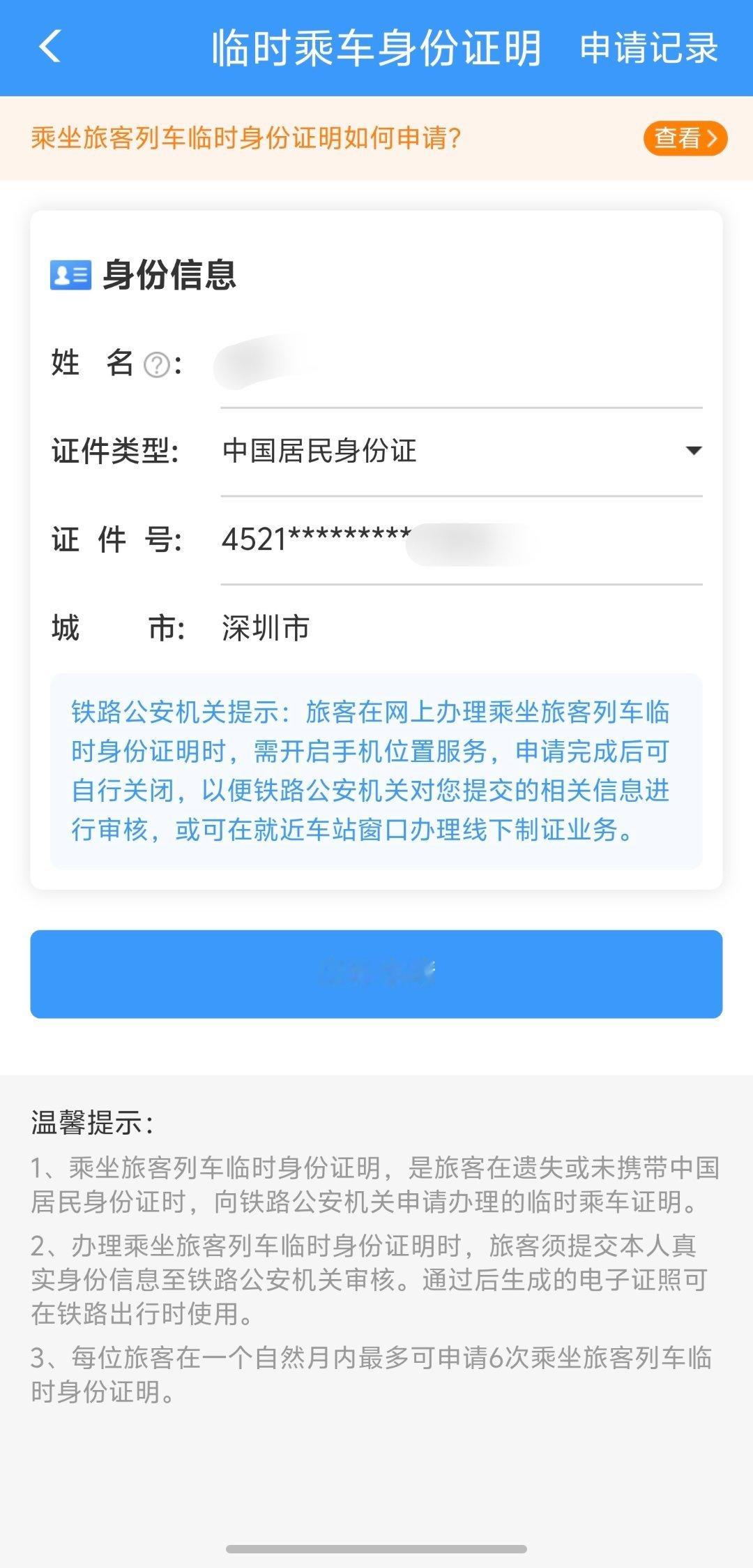 现在电子临时身份证就是个二维码,如果忘带身份证可以在12306里直接申请(每个月只有6次机会)