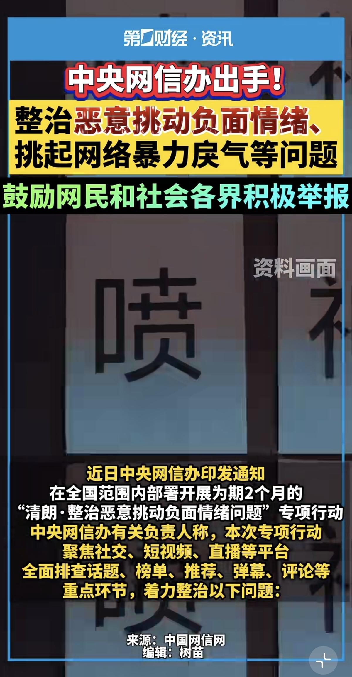 AI“裸奔”时代终结!网信办重拳出击,13421个账号被“团灭” 兄弟们,最近刷短视频是不是感觉越来越魔幻了?前一秒还在看“狗子拆炸弹救人”,后一秒就刷到“明星卖祝福视频”,结果一查全是AI生成的“假货”。 别慌,国家出手了!网信办最近直接“掀桌子”,对全网AI内容来了个大扫除。那些发布虚假信息、不标注AI标识的账号,这次是真栽了——13421个账号被处置,54.3万条违规信息被清理。这波操作,堪称AI界的“扫黑除恶”。 1. 猎奇故事博眼球?封! 有些账号为了流量脸都不要了,编造“狗在高铁站救下婴儿”、“狗拆炸弹救人”这种离谱剧情,还故意不标注是AI生成。这种利用猎奇故事欺骗公众的,直接凉凉。 2. 假冒明星割韭菜?封! 更离谱的是,有人用AI换脸、声音克隆技术,假冒公众人物发布不实言论,甚至直接卖“明星祝福视频”赚钱。这种侵犯肖像权、扰乱网络秩序的,必须重拳打击。 3. 低俗暴力辣眼睛?封! 还有账号借AI魔改动画角色,制作低俗惊悚、血腥暴力内容,严重侵扰未成年人身心健康。这种毒瘤,必须连根拔起。 4. 去标识教程?下架! 更绝的是,连那些教人“去掉AI标识”的教程和软件,这次也被一锅端了。小红书、淘宝、闲鱼上的相关商品,统统下架。 网信办这次明确说了,以后对无AI标识的虚假信息,将保持高压严管。创作者们,别再想着“裸奔”了,主动添加AI标识,才是正道。 AI不是法外之地,想靠“造假”博流量,网信办第一个不答应!