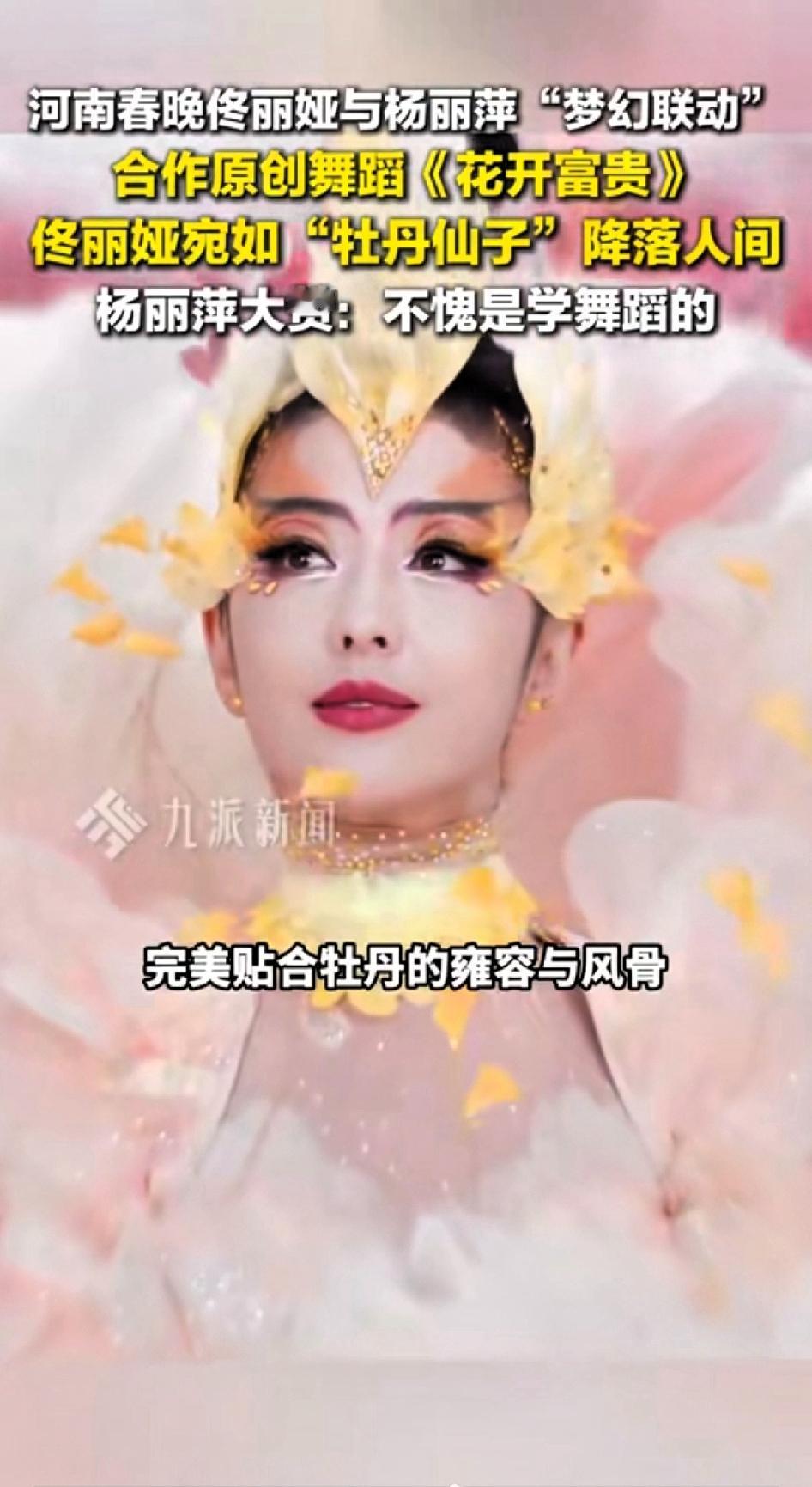 2026年河南春晚佟丽娅与杨丽萍“梦幻联动”,合作原创舞蹈《花开富贵》直接炸场!全网满是对这场表演的赞叹,什么“美到失语”“牡丹仙子下凡”,全是对它的真实评价。 丫丫还是一如既往的艳压群芳。 杨丽萍亲自执编,佟丽娅用科班功底完美诠释。以牡丹为魂,在古琴箫声中,佟丽娅从含苞初醒到盛放传香,每一个动作都尽显东方韵味。 她红配绿的重工刺绣华裳,眉心花蕊装饰,把柔与韧、雅与贵揉进舞姿。杨丽萍盛赞她有很正的东方气韵。 佟丽娅称这是一次圆梦合作,杨丽萍也对她十分欣赏。河南卫视又一次凭文化出圈,这舞台,绝了!