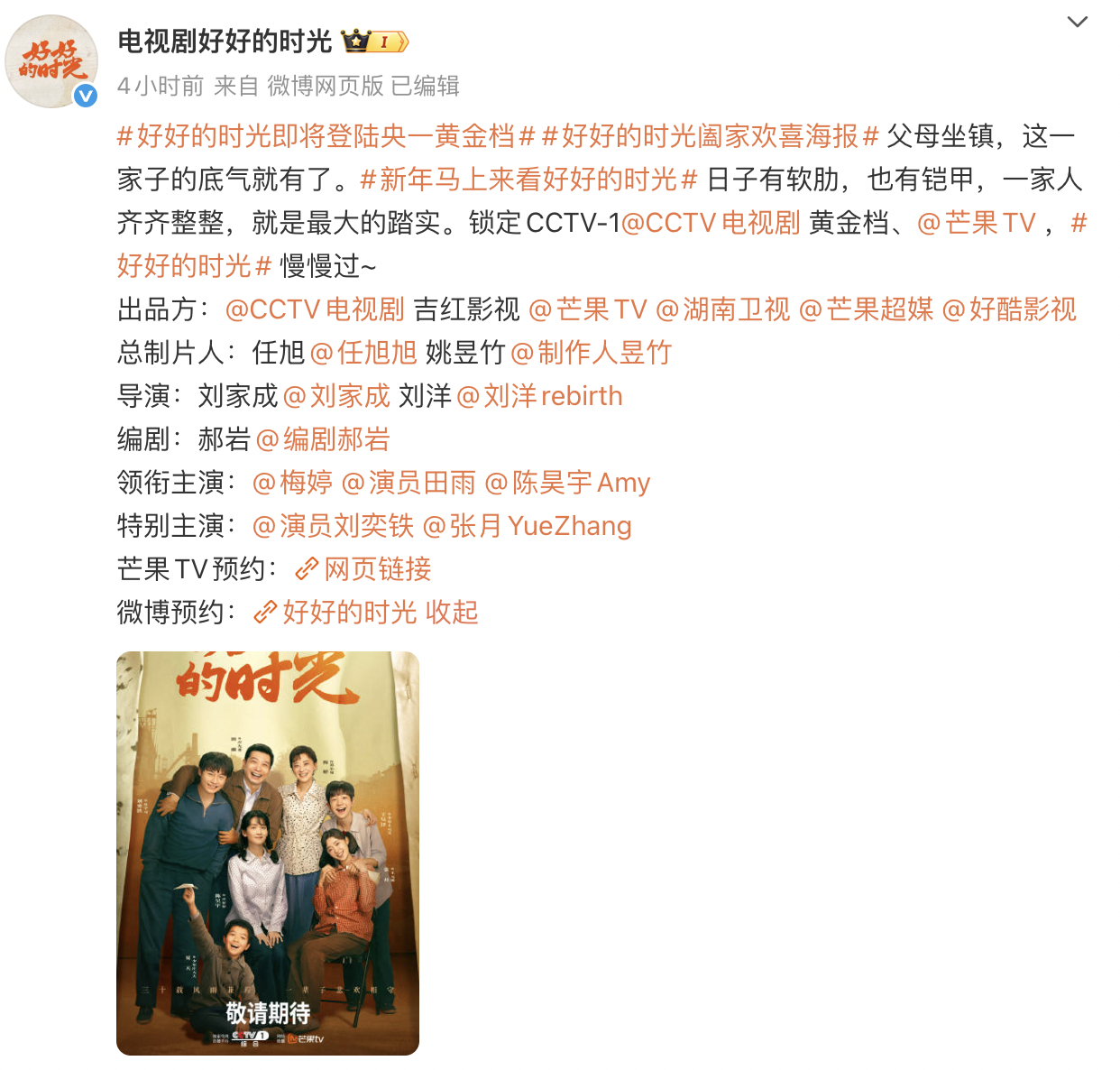 陈昊宇好好时光上星央1的剧接档太平年了,这也算是拿下乘风总冠军的后置资源了,这次有了上星央1的实绩,看看后面有没有更好的发展。