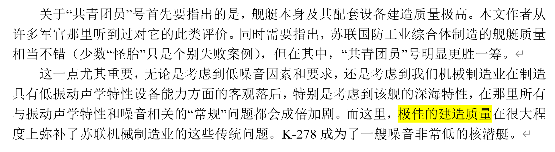 无独有偶,苏联方面的相关回忆录也证明了潜艇制造工业水平对静音性能的影响(图2,685型攻击核潜艇K-278“共青团员”号):“...我们机械制造业在制造具有低振动声学特性设备能力方面的客观落后...极佳的建造质量在很大程度上弥补了苏联机械制造业的这些传统问题。K-278成为了一艘噪音非常低的核潜艇”。