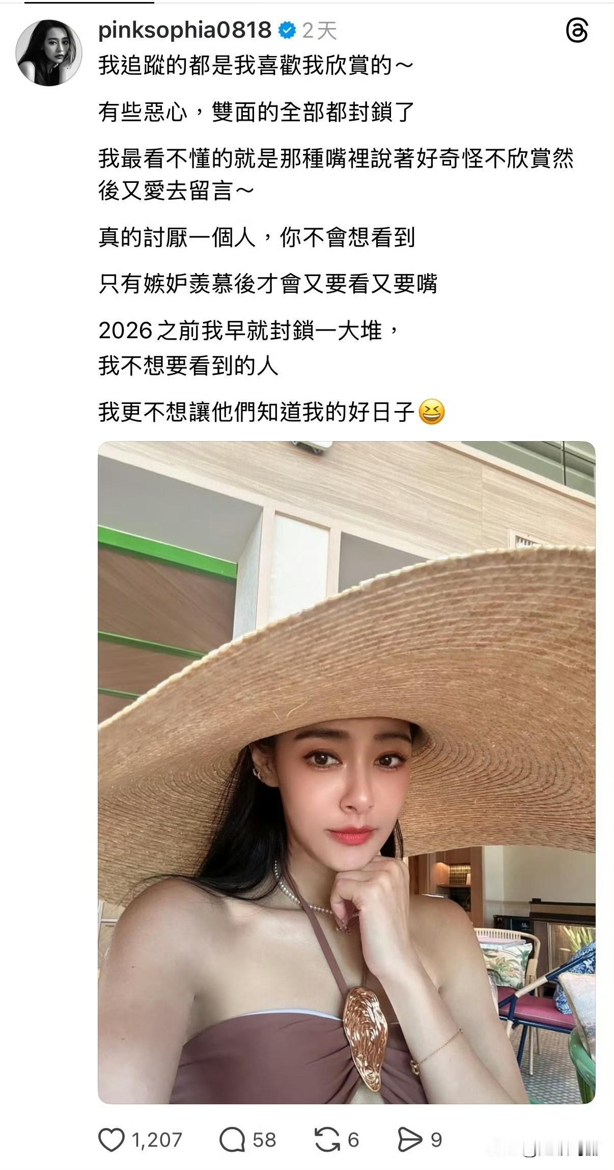 王思佳发文,不想让双面人知道我在过好日子[奸笑] 这姐是不是有被害妄想症,都40多了能不能成熟点,悄悄过自己日子得了,世界上没那么多人想害你!!!