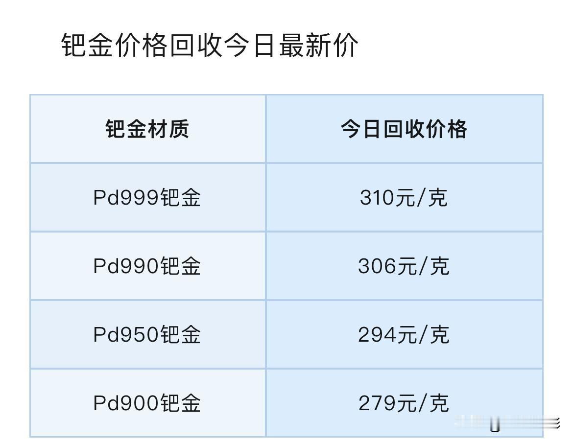 铂金、钯金报价查询!(2026.2.15)铂金、钯金回收报价查看!以及贵金属下周走势分析! 那么先来看看,铂金回收价格为多少钱一克了? PT999铂金回收价格425元/克,PT990铂金回收价格420元/克,PT950铂金回收价格403元/克,PT900铂金回收价格382元/克。 同昨天(2月14日)不同品种铂金回收报价相比较,今天各品种铂金回收价格都整体下降了4元/克。 再来看看,今天各品种钯金回收价格为多少钱一克了? Pd999钯金回收价格310元/克,Pd990钯金回收价格306元/克,Pd950钯金回收价格294元/克,Pd900钯金回收价格279元/克。 同昨天(2月14日)各品种钯金回收报价相比较,今天各品种钯金回收价格也都整体下跌了4元/克。 贵金属今日价格走势分析;2026年2月15日,本周国际金价收盘于5000美元/盎司上方,累计涨幅约1.6%,整体交投区间在4877-5120美元/盎司。国际银价收盘于77美元/盎司上方,累计跌幅约0.5%,整体交投区间在73-86.2美元/盎司。 对于下周金价走势最新预测:33%分析师看涨下周金价(国际金价仍将位于5000美元上方),25%分析师看跌下周金价,42%分析师认为下周金价横盘整理。 注意:铂金回收有这以下4个知识点,特别的重要,谨防上当吃亏。 第一,铂金回收是不需要发票和以前的购买凭证的。如果有人跟你说因为没有发票要扣你手续费,那他一定是在坑你。 第二,铂金回收是没有折旧费一说的,不管你是戴了几十年还是刚刚买的,回收的时候只看重量和纯度,只要纯度是3个9以上的,回收价格都是一样的。 第三,卖之前一定要知道自己首饰的精准克重,以防被其他人偷秤。 第四,铂金回收就是按照当天的国际金价减个几块钱一克回收,所以要提前查一下当天的国际金价。 只要注意这4点,根本没有人能够坑得到你。 最后说声,所有信息,都只是提供参考价值! 投资有风险,理财需谨慎! 铂金回收行情 铂金价格 铂金回收价 铂金价格波动 白银铂金回收 铂金行情分析 铂金钯金价格