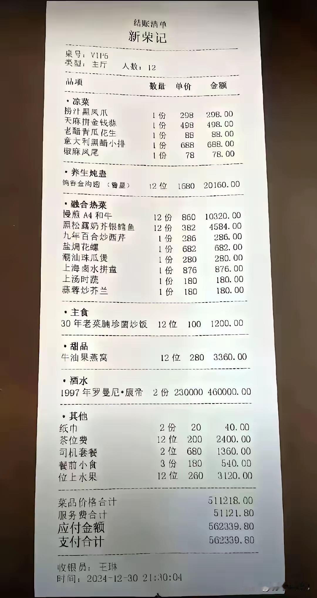 这菜味道也就一般性,也就两瓶康帝占了大部分。