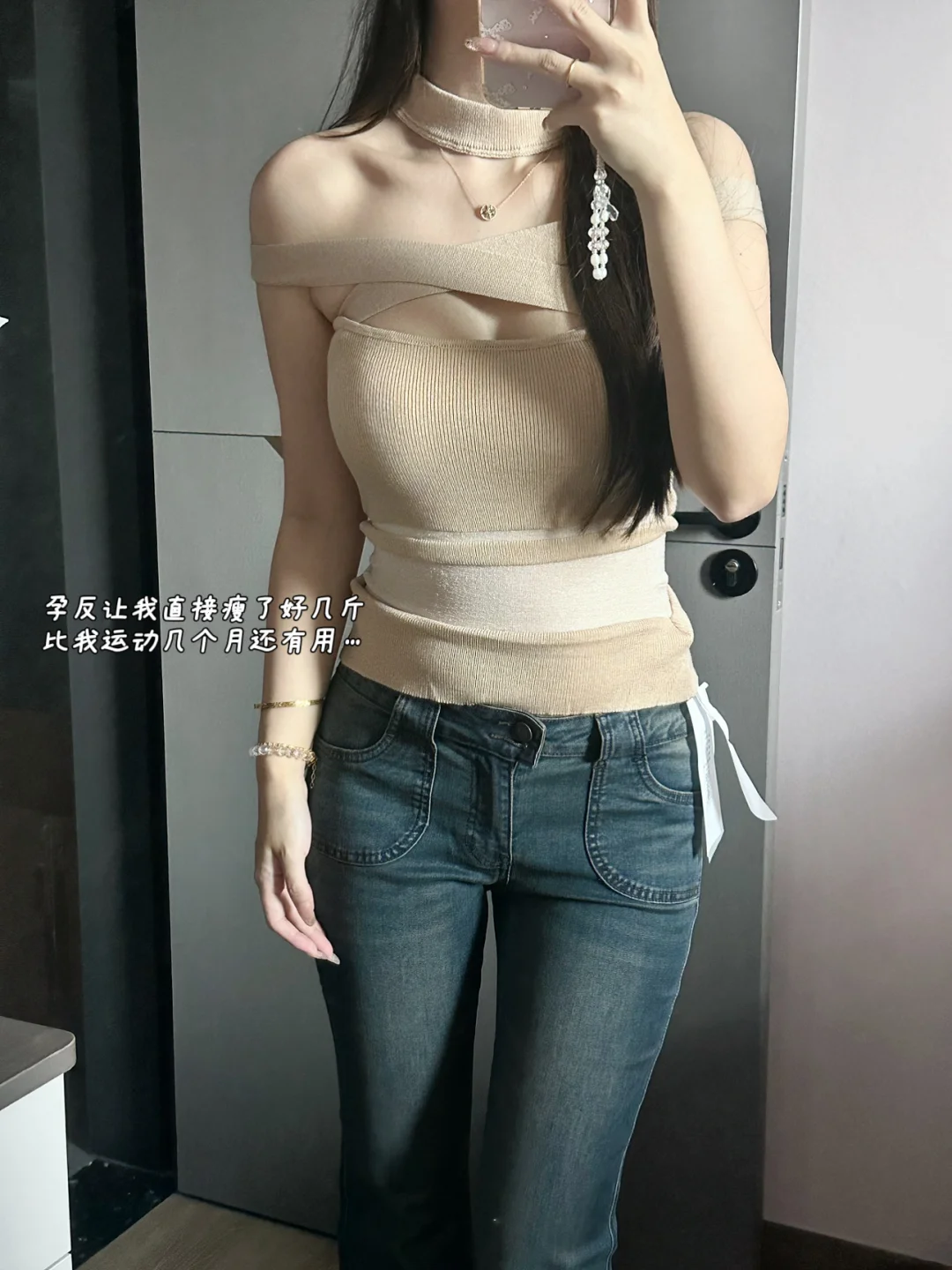 怀孕的妈妈对着镜子自拍,着实是极有意义的事。怀孕7周时,肚子还不太显怀,可过了3