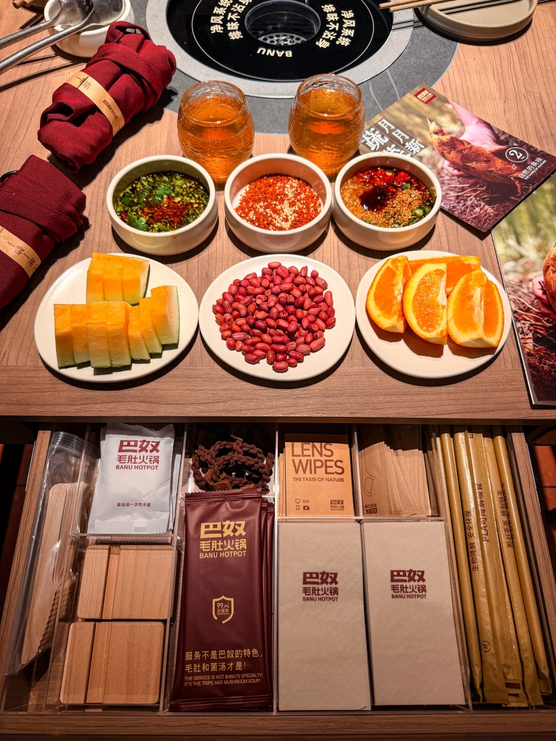 盼了好久的“巴奴”终于开到保定啦 ✨连续7年必吃榜实力超抗打 🍲经典毛肚七上八下15秒 官推蘸干碟/蒜泥香油,鲜脆弹牙 🥬必点绣球菌,脆嫩吸汁,素菜天花板! 🍄菌汤三喝官推攻略 1️⃣加15粒香葱趁热喝满是菌香 2️⃣配香菜猪肉滑一口肉一口汤超鲜 3️⃣拽面+香葱+香醋,喝汤吃面绝了 每日现熬云贵野山菌,鲜到喝三碗 💯细节控狂喜 抽屉里全套配件:湿巾/眼镜布/辫绳/牙线/一次性手套等等 服务一流,大城市标准培训上岗体验感拉满💯 保定火锅脑袋直接冲!