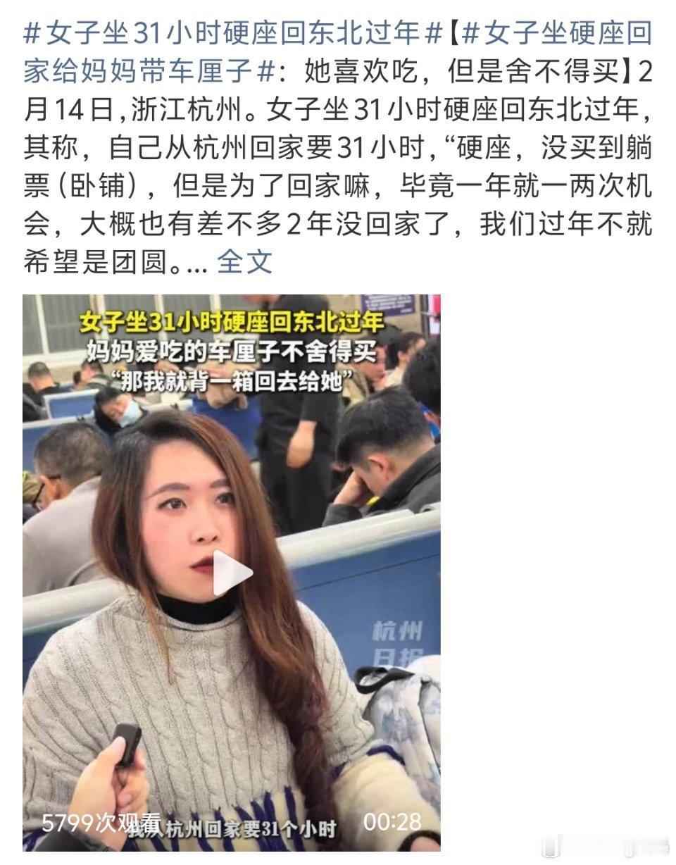 女子坐31小时硬座回东北过年这什么跌腚?我最多也就坐一晚上的到井冈山那都累够呛