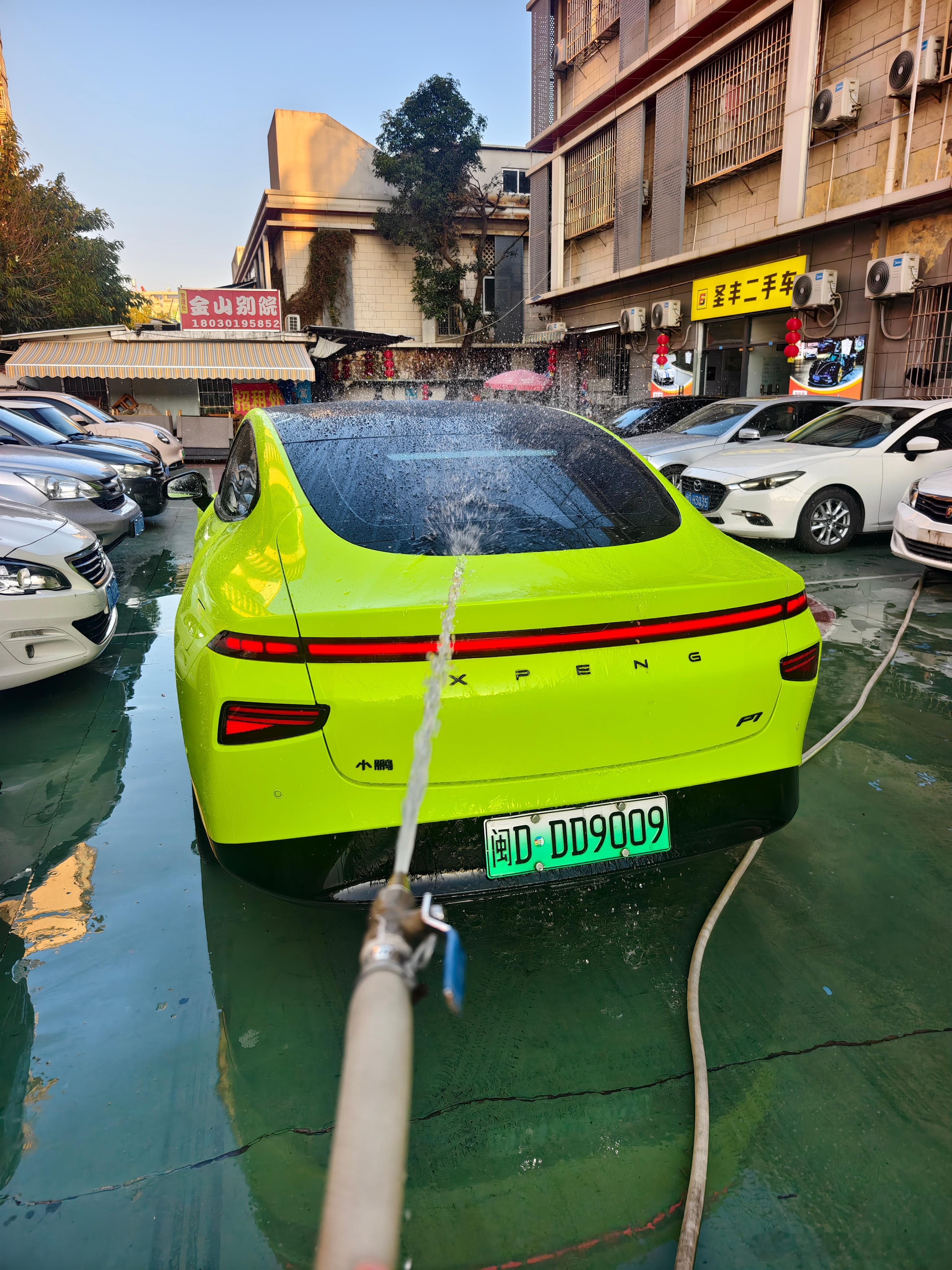 小鹏没有很脏,就不去自助洗车排队浪费时间了,店里水管冲一冲完美搞定…