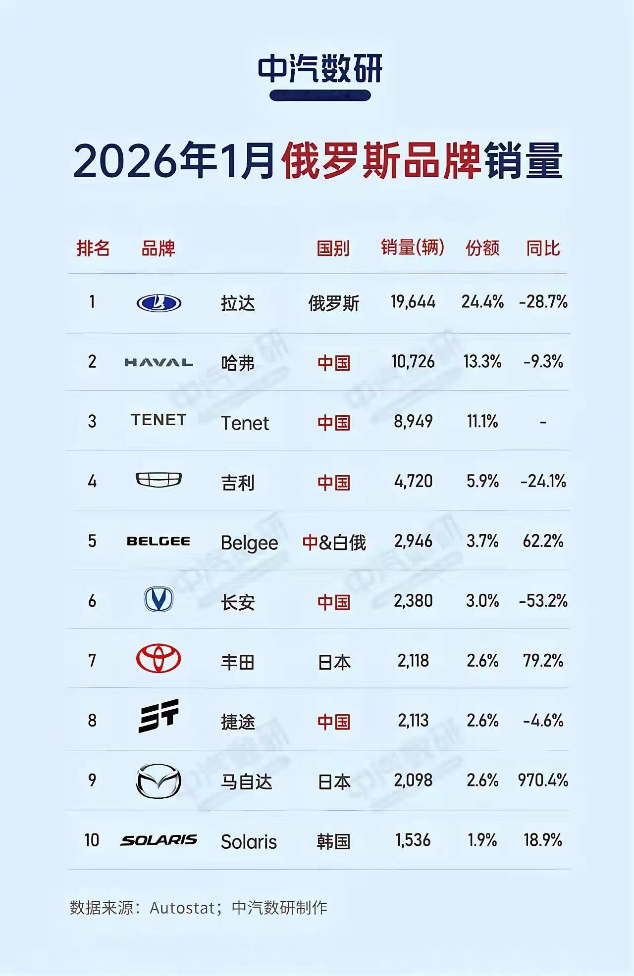 俄罗斯一月汽车销量榜韩国日本车什么时候可以在俄罗斯卖了?