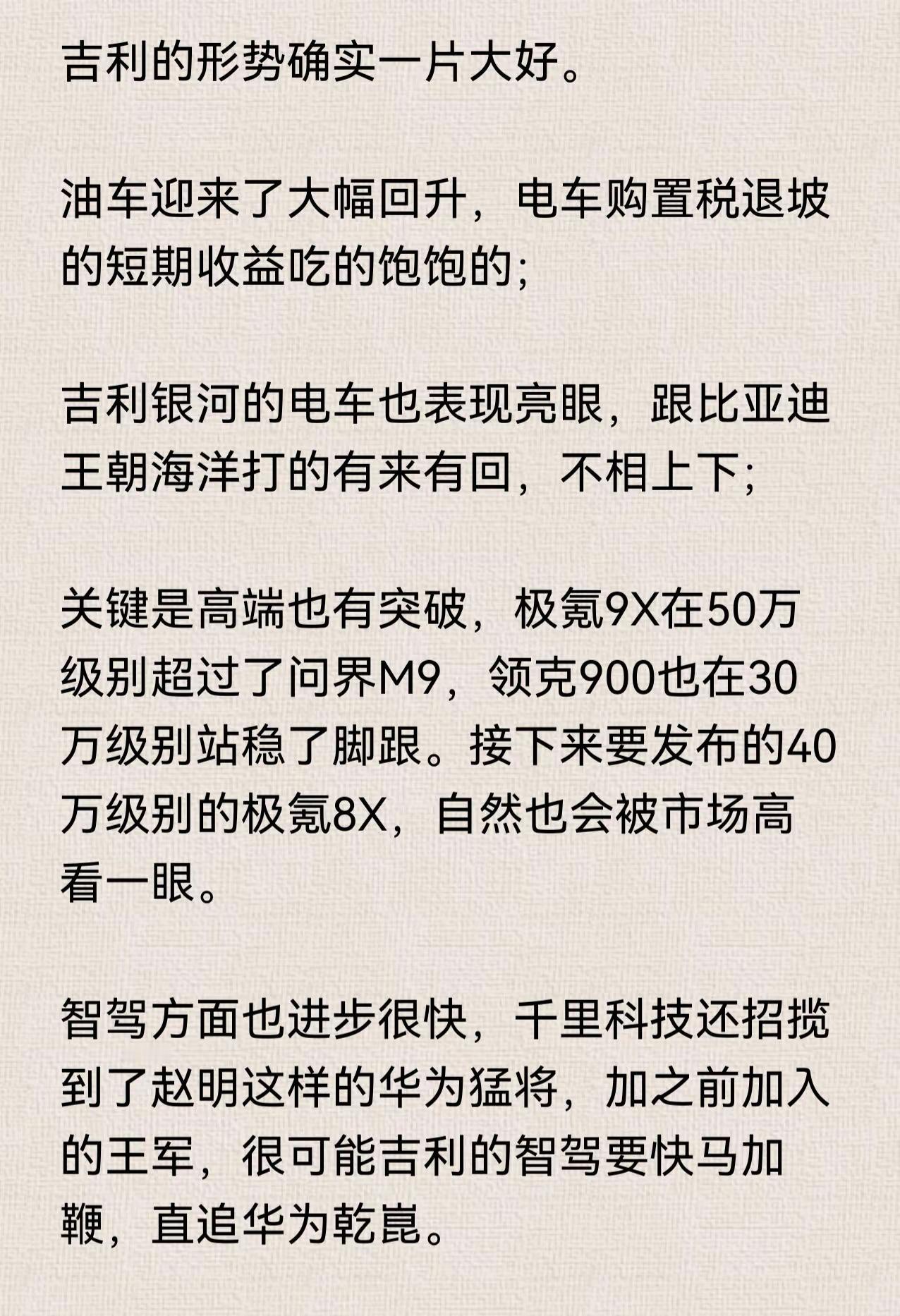吉利形势一片大好,比亚迪要加油了。吉利汽车 比亚迪 赛力斯