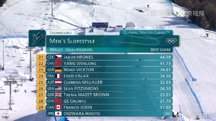 #葛春宇杨文龙无缘晋级坡障决赛##杨文龙41.73分遗憾出局#冬奥会单板滑雪男子坡面障碍技巧预赛,中国选手杨文龙41.73分排名第22,21.70分排名第28遗憾止步,无缘晋级决赛。#苏翊鸣第二滑72.78分##苏翊鸣晋级坡障决赛##谷爱凌大跳台进决赛发文##国际雪联回应谷爱凌吐槽##苏翊鸣头盔上贴了中国国旗#(编辑:杨雨桐;审签:周乐瑞)