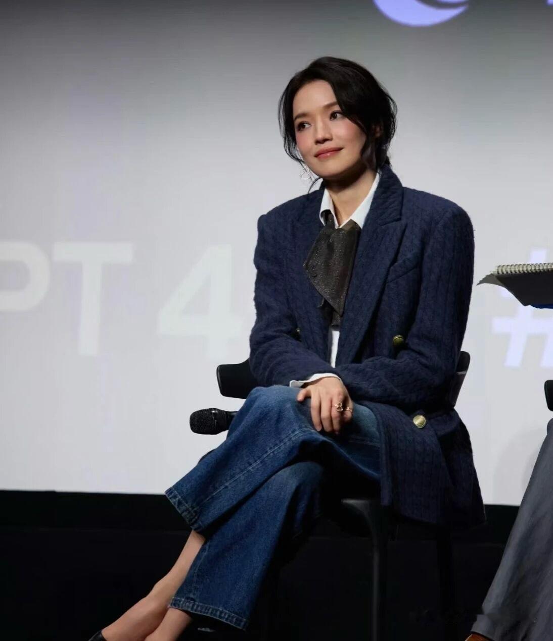 张馨予这造型好特别,肉色打底裤,其中的亮点有点尴尬。