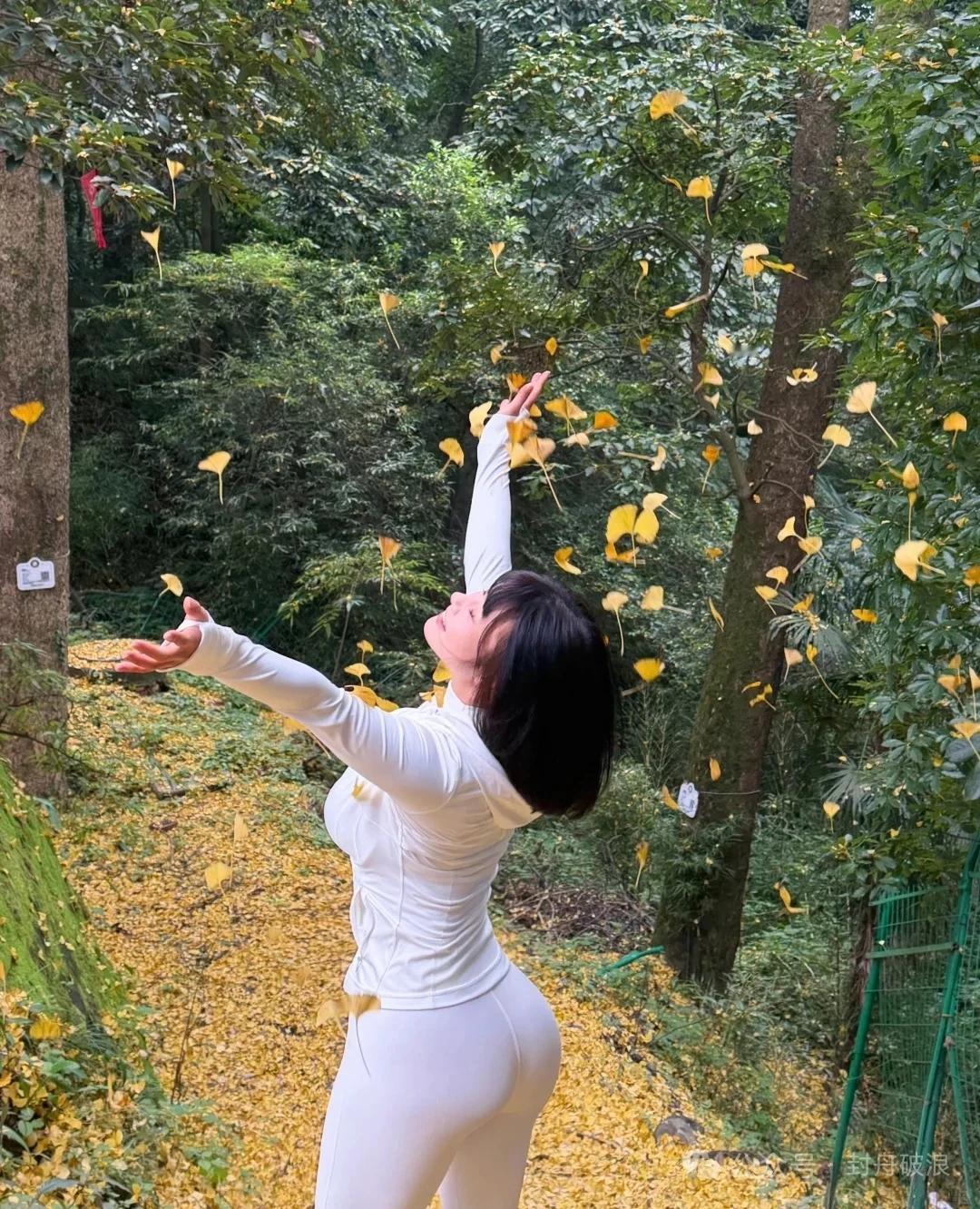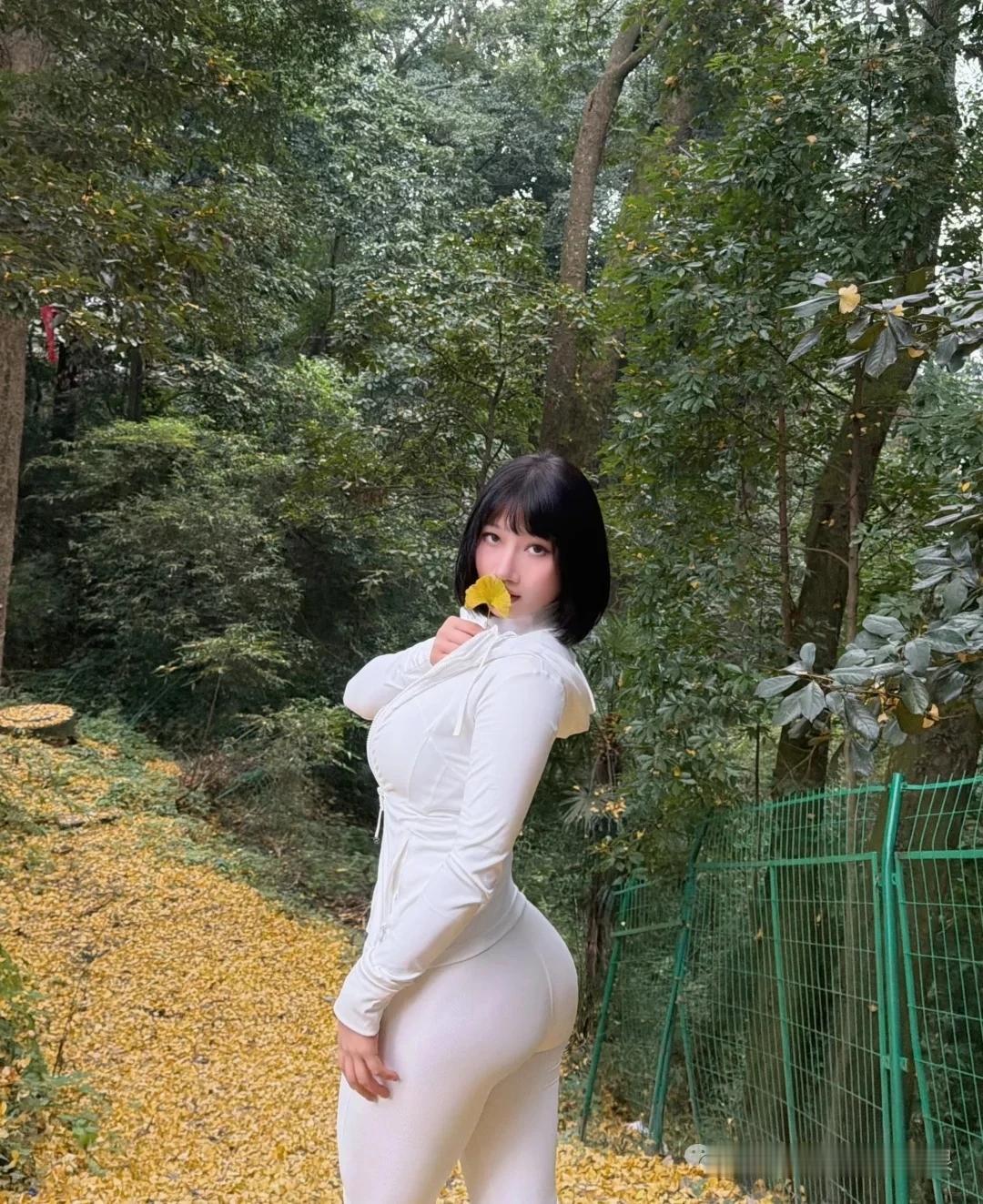 秋日漫步,白色连帽衫,落叶相伴,温柔时光。🍂🍂🍂