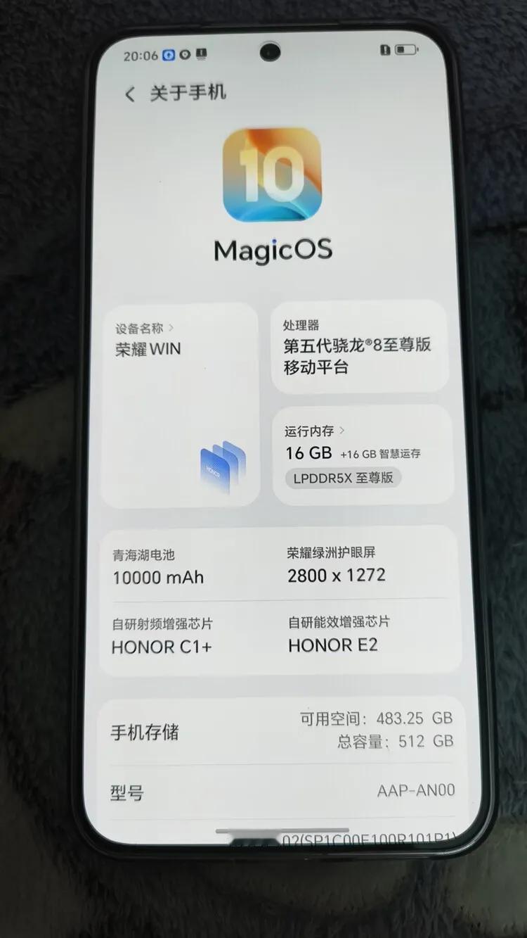 不好意思,是我唐突了!荣耀WIN这机器,用了几天,有几个点我还真没绷住。 先说最让我意外的一手。10000mAh的电池,你脑子里第一反应是不是块板砖?结果上手那一刻我直接愣住了:好家伙,这手感居然跟主流手机差不多,荣耀你是咋塞进去的? 续航这块更是离谱。我正常用,刷视频回消息,两天过去它居然还有电。真就两天一充,出门不用到处找充电宝的感觉,爽翻了。 游戏党可以重点关注一下。这机器有个185Hz的屏幕,懂的都懂,打游戏确实顺滑。但更狠的是它给了个5920Hz的超高频PWM调光,外加什么圆偏振光护眼技术。说白了就是,你拿它肝一下午游戏,眼睛没那么容易酸。长时间玩下来,确实舒服不少。 性能没啥好说的,骁龙8E5加上一个散热风扇,基本属于物理外挂级别。原神啊、星铁啊,全拉满也不带卡的,高负载场景稳得一批。 最后提一嘴它的双1216立体声扬声器。本来我以为游戏手机外放也就听个响,结果这玩意开外放还真有沉浸感,吃鸡听声辨位都更带劲了。 总结一下:这机器,有点东西。