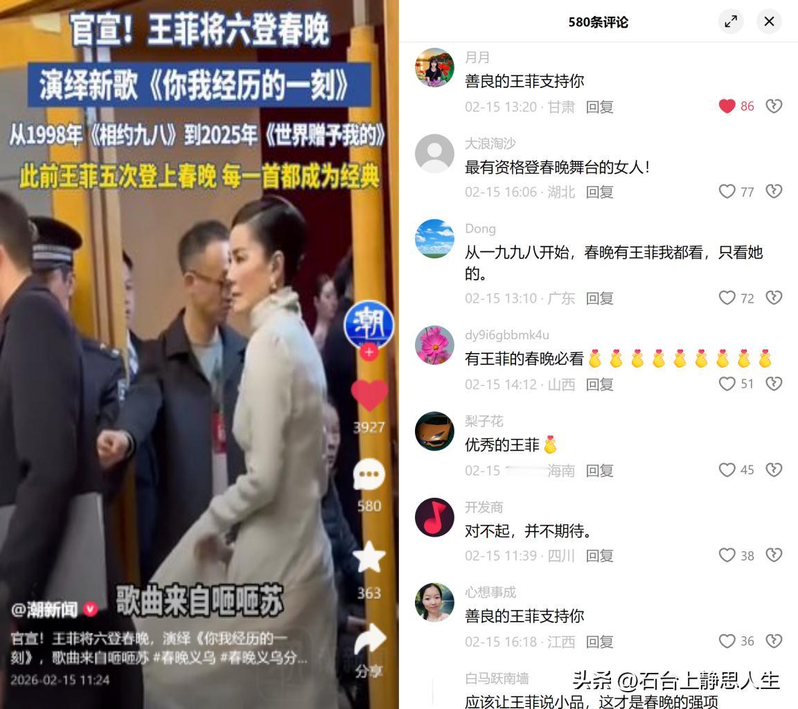 王菲六登春晚,选了首冷门歌! 刚官宣的消息,天后王菲第六次上春晚,这次没唱自己的爆款老歌,反而挑了独立乐队咂咂苏的《你我经历的一刻》。 大家直接两极分化:死忠粉狂喊“有王菲必看”,路人却吐槽“老面孔霸屏,乐坛没人接班了”。 可你知道背后的门道吗? 根本不是没人接班,春晚这是在做一次清醒的实验! 导演组主动联系的咂咂苏,马懿推荐了这首没重复副歌、意识流歌词的反流行作品,王菲一眼就被这种非典型打动,就像2010年她翻李健的《传奇》,直接把小众歌手带火。 那些喊没人的,只是没留意角落里的好作品罢了。用天后的审美权威激活小众创作,这根本不是断层,是在给乐坛挖新苗! 别再盯着老面孔骂了,这才是春晚该有的格局啊! 你觉得这首冷门歌,能成下一个全民经典不?