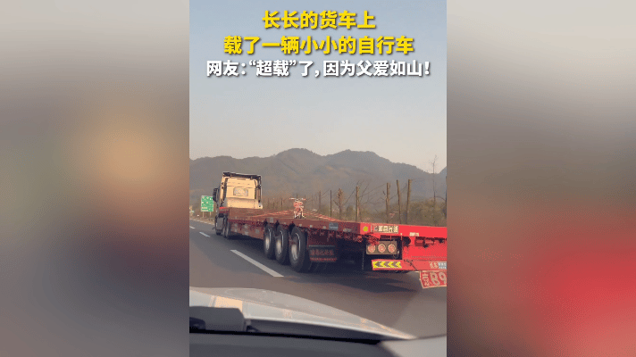 戳心!2月13日重庆铜梁,一段货车视频火到被人民日报关注——长长的货运车厢里,稳稳捆着辆小小的儿童自行车,像座移动的“父爱纪念碑”。 司机师傅大概是盘算着:跑完这最后一车,就骑着它载娃去赶集。你看那车座调得偏低,车把上还缠着新胶带,显然是特意为孩子准备的。跑长途的师傅都懂,年前最后一单最熬人,可一想到家门外等的人,方向盘都握得更稳。 这哪是“超载”?是把一年的牵挂打包上路。就像咱身边那些奔波的父辈,不善说爱,却总把最好的悄悄备好:有人带半车年货挤绿皮车,有人扛着新买的玩具走山路,都是想让团聚的时刻再甜一点。 回家的路再远,被惦记的人总在近旁。你家有这样“藏在细节里的爱”吗?评论区聊聊,为这位重庆师傅点个赞,转发让更多人看见:最沉的货,永远是心里的牵挂。