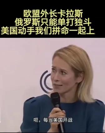 欧盟外长卡拉斯说,“俄罗斯只能单打独斗,美国动手,我们拼命一起上。” 这女人不寻常,她把俄罗斯恨到了极点,她的仇恨源于她妈妈、祖母、曾祖母曾被苏联流放西伯利亚。 她当了欧盟外长,他更加利用自己手中权利,极力打压、遏制和报复俄罗斯,它们狗仗人势,为虎作伥,甘愿做美国附庸和奴才。 实际上,美国西方国家就是一个流氓的集团,美国是老大,他国是打手,它们对美国俯首帖耳,言听计从,唯美国马首是瞻,为了自己利益,在美国指使下撕咬他国,欧盟就是美国的附庸和走G。 我鄙视欧盟外长,她和喊特朗普爸爸的北约秘书长吕特真是臭味相投了。