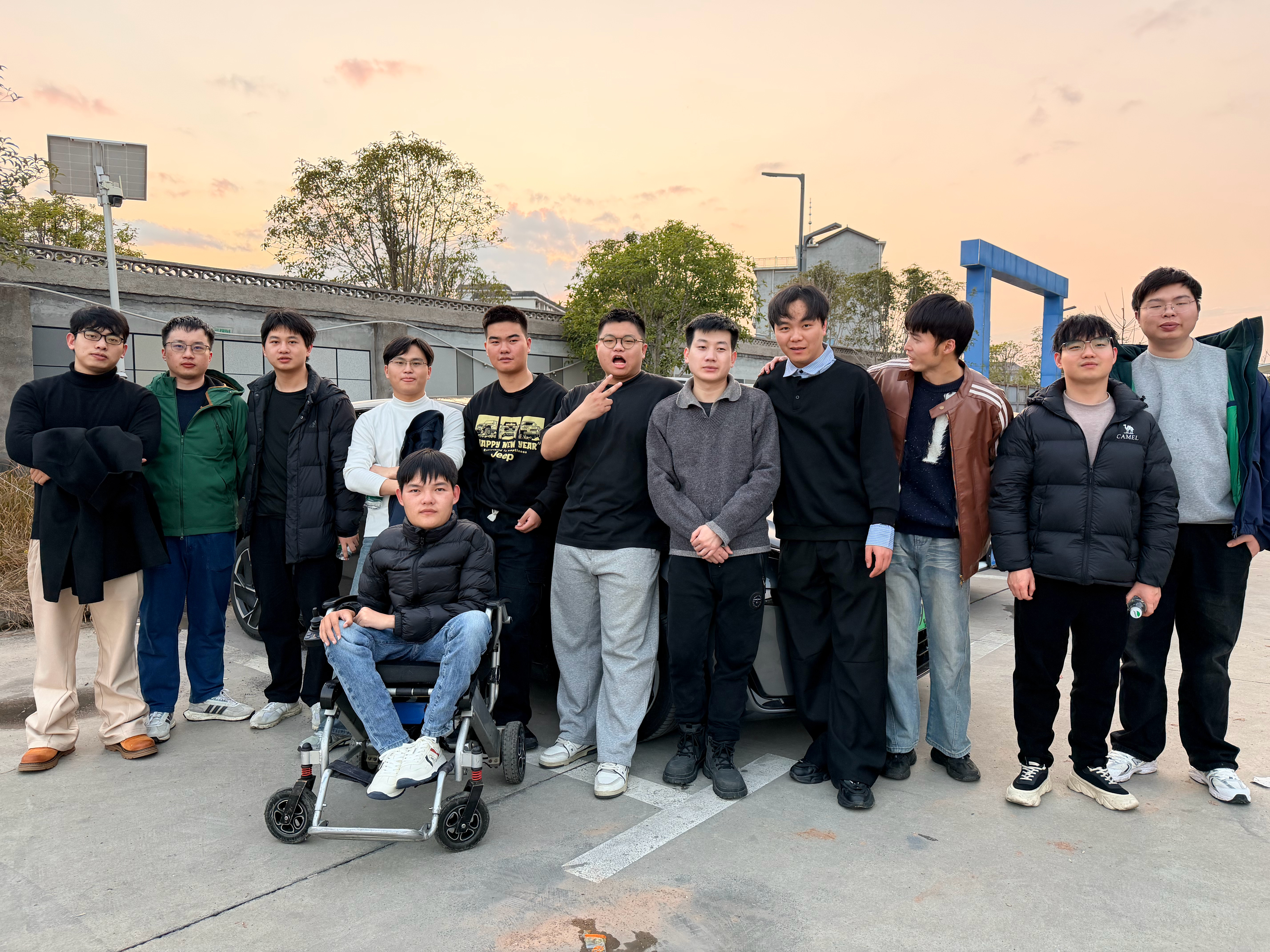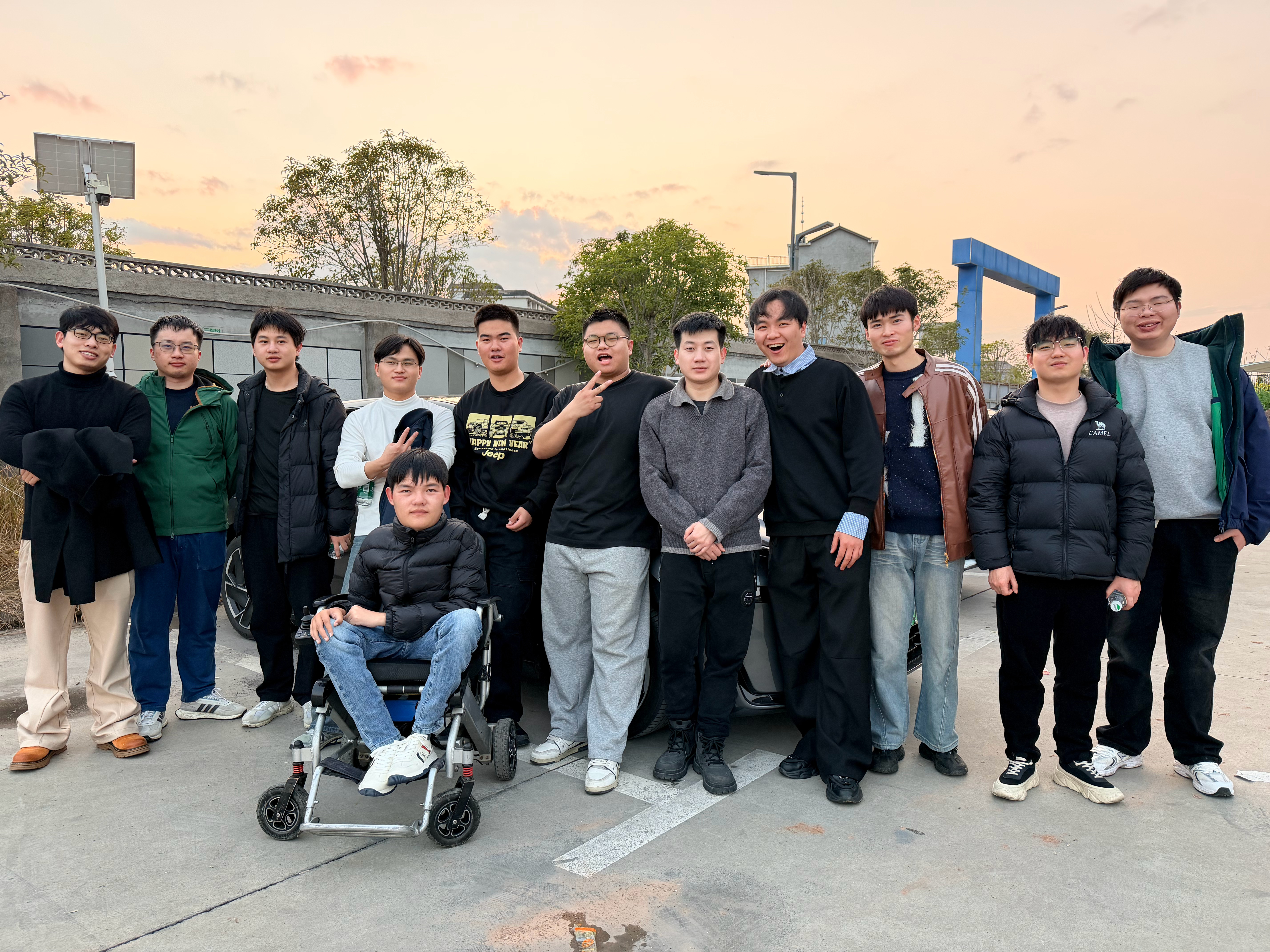 今年,借着同学乔迁的机会,我们终于有了一张像样的合照。之前每年聚会,大家只顾着玩,总忘了定格瞬间,这一次,在黄昏的霞光里,我们十一个人挤在车旁,有人比着“耶”,有人笑着眯起眼睛,我站在中间,穿着黑衣服、灰裤子,也笑得格外自在。这张照片,不是刻意的摆拍,而是我们青春最真实的注脚——原来最好的我们,从来都在彼此身边。