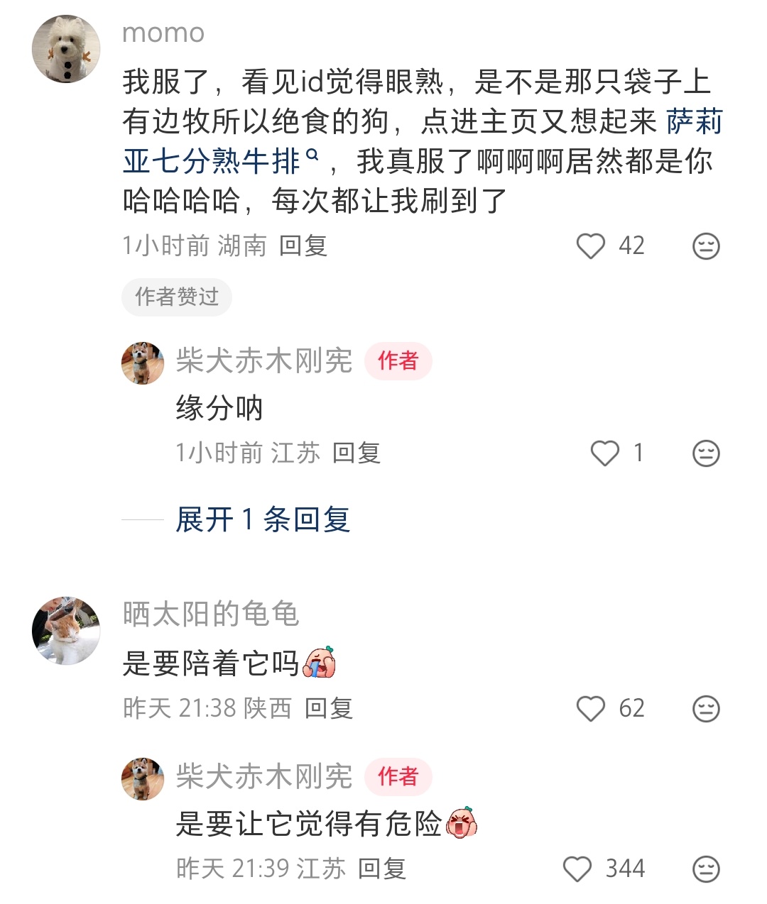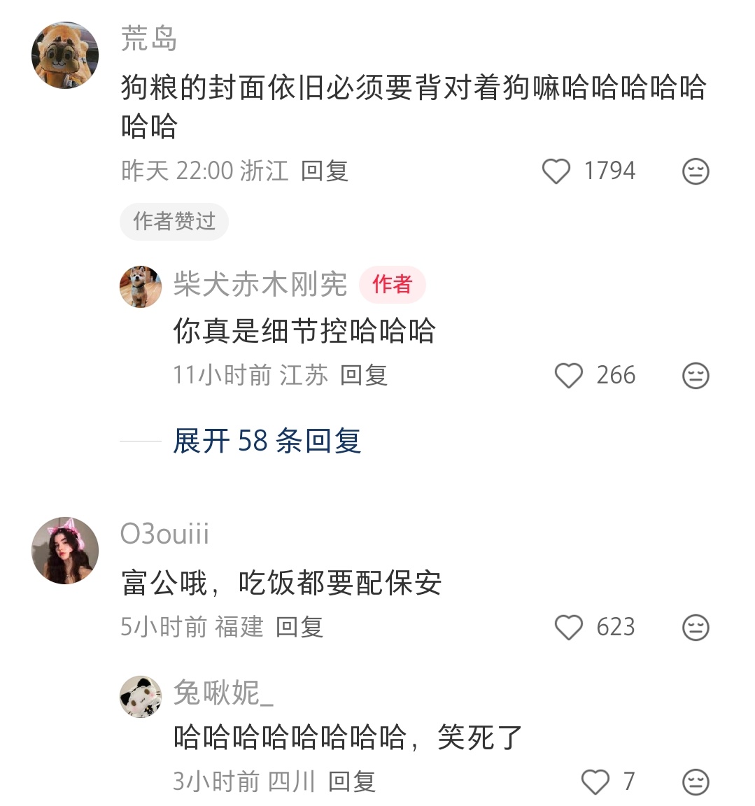 哈哈哈这个小狗,评论说的这个事情我也记得之前因为狗粮袋子上有个边牧,吓得他不敢吃饭。主人找了很多原因,评论里有人提醒之后,把狗粮袋子转过去,狗子果然敢吃饭了现在又要被恐吓着才肯吃饭