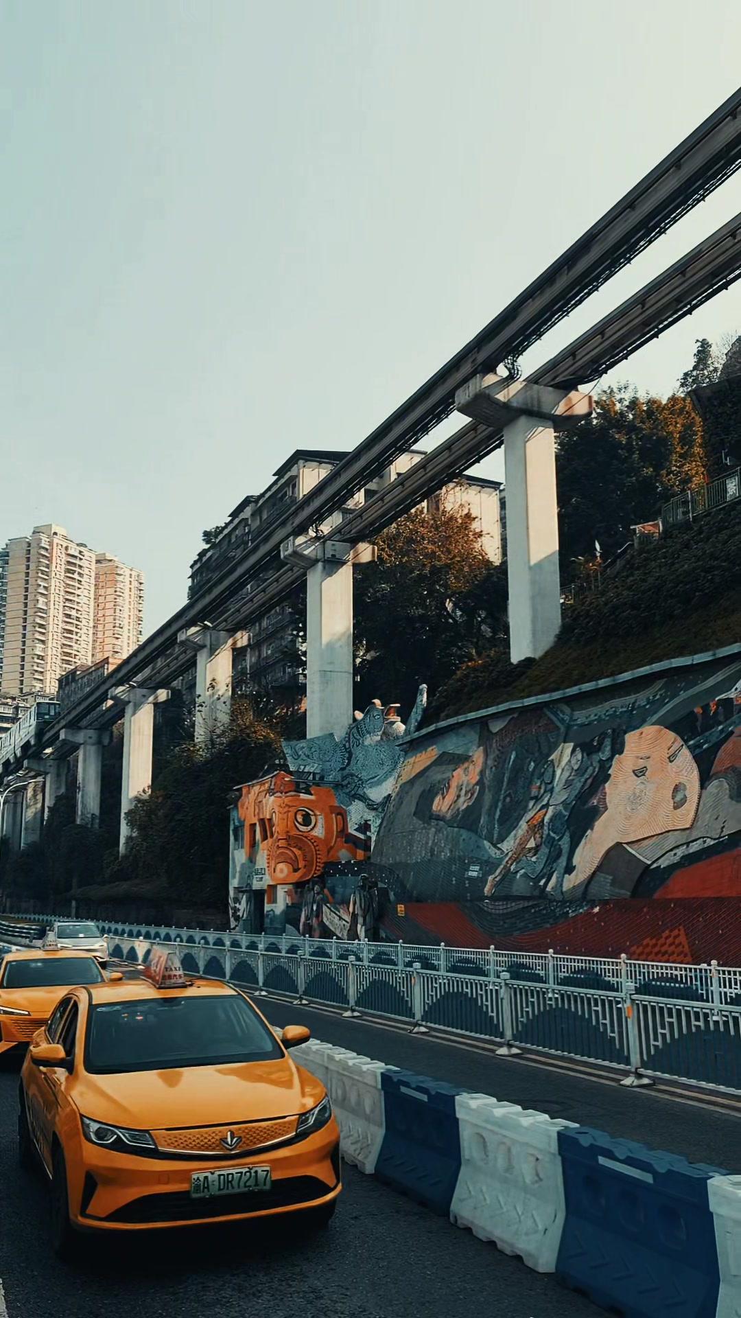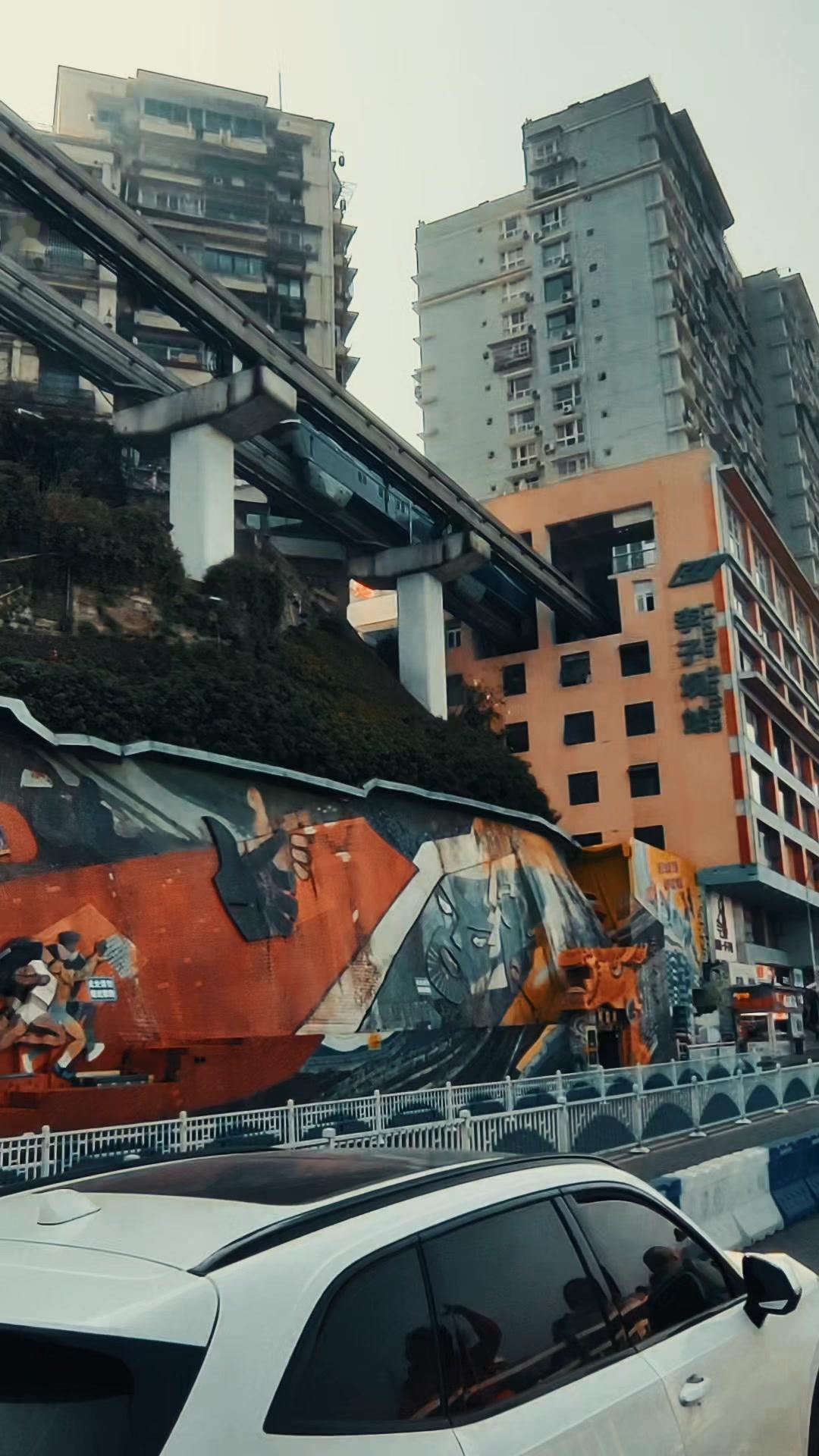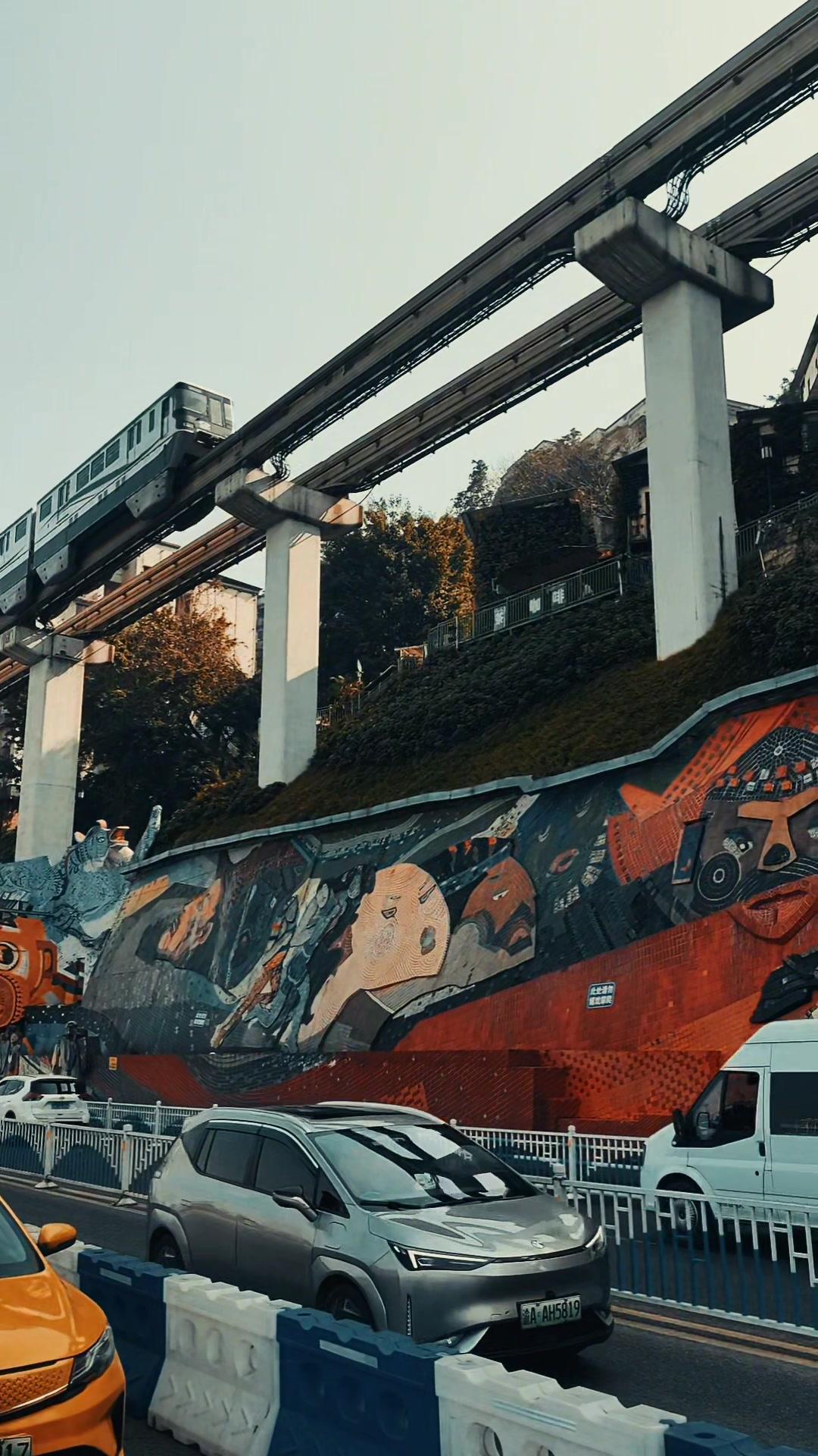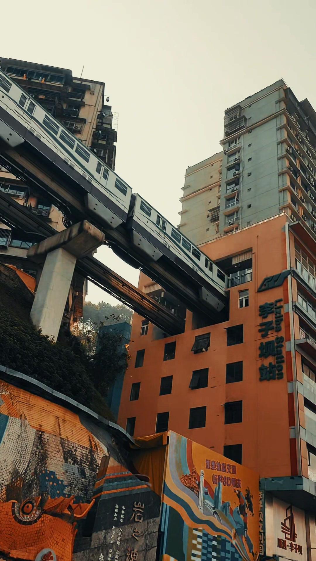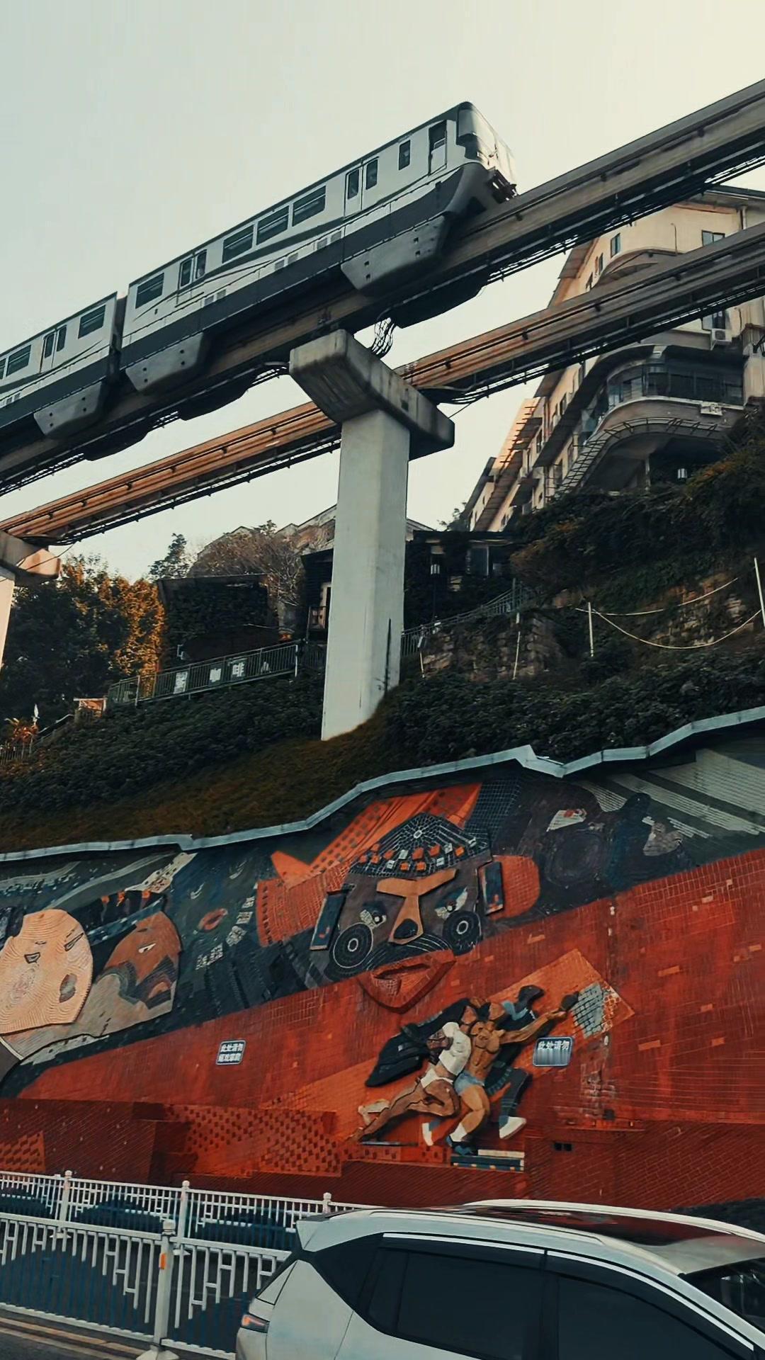 🌉重庆的魔幻,今天才算真正见识到!自驾路过李子坝,导航显示到达目的地,抬头一看直接懵了——轻轨居然在居民楼的第8层跑!楼下是热气腾腾的火锅店,楼上是住户生活的阳台,中间就是呼啸而过的地铁。 最绝的是这种"站桥分离"的设计,轻轨站在8楼,却有单独的轨道和站台,完全不影响居民日常。第一次见这样的结构,真感叹设计师脑洞太大,如果不是亲眼所见,根本不敢相信世界上还有这样的交通方式。