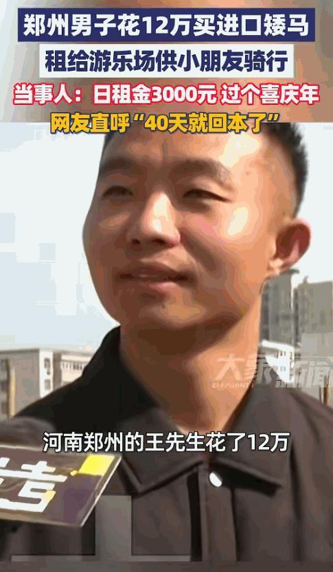河南郑州,男子花12万买了一匹小矮马,趁过年租给一家游乐场,租金3000元。记者问:“一个月3000吗?”男子说:“一天!” 郑州春节的游乐场,寒风也挡不住的热闹。然而,一则关于一匹小矮马的对话,却让无数人瞠目结舌。记者试探性问出“月租三千”时,男子云淡风轻地纠正:“不是一个月,是一天。”一天三千!这瞬间点燃了舆论场,网友们纷纷化身精算师,高呼“暴利风口”。但,这真的是一桩躺赚的生意,还是一个美丽的泡沫? 河南郑州的春节总是带着一股子燥热的喧嚣,哪怕是一月的寒风也吹不散游乐场里那股混合着爆米花和汗水的味道。 就在这几天,某个游乐场的角落里发生了一场足以击穿普通人金钱观的对话。一位记者费劲地挤过围观的人墙,把麦克风递到了一位中年男子的嘴边。 旁边伫立着一匹圆滚滚的进口小矮马,其肩高不足一米。它那温顺的眼神,恰似一个可爱的毛绒玩具,惹人怜爱。记者显然是做了功课的,看着这匹价值不菲的小家伙,试探性地抛出了一个数字:“这租金不便宜吧,一个月得三千?” 男子愣了一下,随后的回答像一颗深水炸弹,瞬间炸翻了现场和后来的整个舆论场:“不是一个月,是一天。” 一天三千。这个数字在2026年这个马年的春节窗口期,显得既荒诞又合理。为了这匹马,男子之前可是咬着牙掏了12万的真金白银。 这绝非菜市场选购白菜般轻松随意,而是切切实实、真金白银的重资产投入,每一分资金皆需谨慎考量,不可有丝毫的草率与大意。但这短短几秒的对话,迅速在网络上发酵成了一场关于“暴利”的狂欢。 评论区里的键盘噼里啪啦作响,网友们瞬间化身精算师,开启了简单粗暴的“线性计算”模式。 他们心算如飞,迅速盘算起账本:每日收入三千,一月按三十日计,累计下来便是九万之数,这账算得又快又准。即便将休息日纳入考量,这十二万的本金,最多四十天便可实现回本。如此高效的资金回笼,着实令人瞩目。 有人酸溜溜地留言:“我这起早贪黑上一个月班,还不如这马站着吃几天草。”在这种逻辑里,这哪里是一匹马,分明就是一台会呼吸的印钞机。 但这种令人生羡的“电子表格”思维,恰恰忽略了商业世界里最残酷的那个变量——波动性。 之所以能喊出“日租三千”的天价,完全是因为此刻正处于“春节+马年”这个极其特殊的时空夹角。 家长们掏这笔钱,买的不仅仅是孩子骑在马背上的那几分钟,更是为了讨个“马到成功”的好彩头。这是一种稀缺的情绪溢价,而不是常态化的商品价格。 一旦春节这个时间窗口关闭,热闹散去,游乐场的人流断崖式下跌,这匹马的身价立马就会被打回原形。 平日里,此等小矮马日租金至多1500元,更多时候处于无人问津的“空窗期”,少有人愿为其租赁掏腰包。那个“月入九万”的幻梦,在现实的淡季面前,脆弱得像个肥皂泡。 更要命的是,活体租赁和那些冷冰冰的旋转木马不一样,它是一项沉重的“生物资产”。 你可以给碰碰车断电,但你没法给胃断电。这匹马从落地的第一天起,就在持续燃烧着现金流。 当初那12万只是入场券。异地购入时,光是检疫费和运输费,就先吞掉了5000多元。 在这个看不见的账本里,每个月雷打不动的一两千元支出,得花在饲料和营养品上。尚需专人负责牲畜修蹄、驱虫并开展防疫工作,此类事务皆为刚性成本支出,是运营中难以削减的必要花费。 为了赚那游乐场的租金,你还得专门雇个人牵马,还得搞定场地的防疫证明和围挡。这些细碎的开支,像钝刀子割肉一样,一点点蚕食着利润。 而且,这门生意还悬着两把达摩克利斯之剑:一是马生病,二是人受伤。 进口宠物的医疗费是个无底洞,去一次宠物医院,几千上万那是家常便饭。 万一哪个“小祖宗”在骑乘时摔了,或者被马蹄子踩了一脚,那后续的赔偿责任,搞不好能让这几个月赚的钱全部赔进去,典型的“捡了芝麻丢西瓜”。 所以,当我们剥开“日租三千”这层金色的糖衣,看到的可能并不是一个暴利的商业神话。 这位郑州大哥,或许是个精准狙击节日流量的投机客,正顶着5到6个月的漫长回本周期,在风险的刀尖上跳舞。 也或许,他本就是个单纯的宠物爱好者,平日里养着玩,春节顺手租出去补贴一下高昂的“养宠账单”。 对后者来说,这笔钱是意外之喜。对前者来说,这是一场充满了不确定性的长线博弈。 围观的我们,看看热闹就好。真要脑子一热,觉得这是个“躺赚”的风口去跟风买马,最后大概率会被手里这头“吞金兽”拖进漫长的寒冬里。