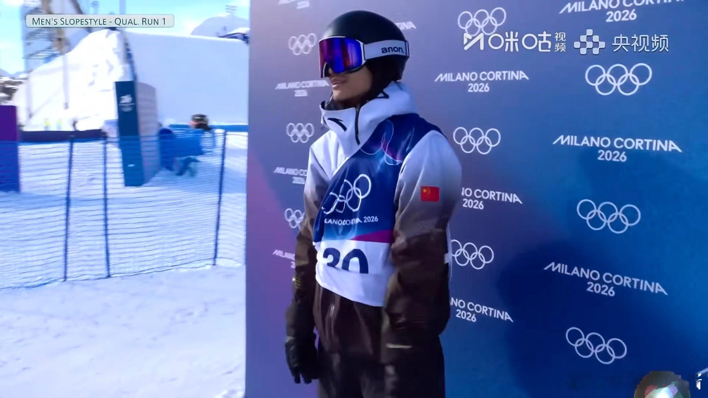 冬奥会单板滑雪男子坡面障碍技巧预赛,中国选手第一滑完成,取得21.70分,继续加油!