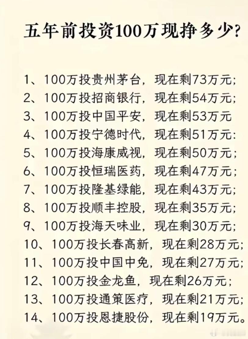 看到这100万五年投资回报表,扎心了~~最近五年你炒股赚了多少钱?实话实说