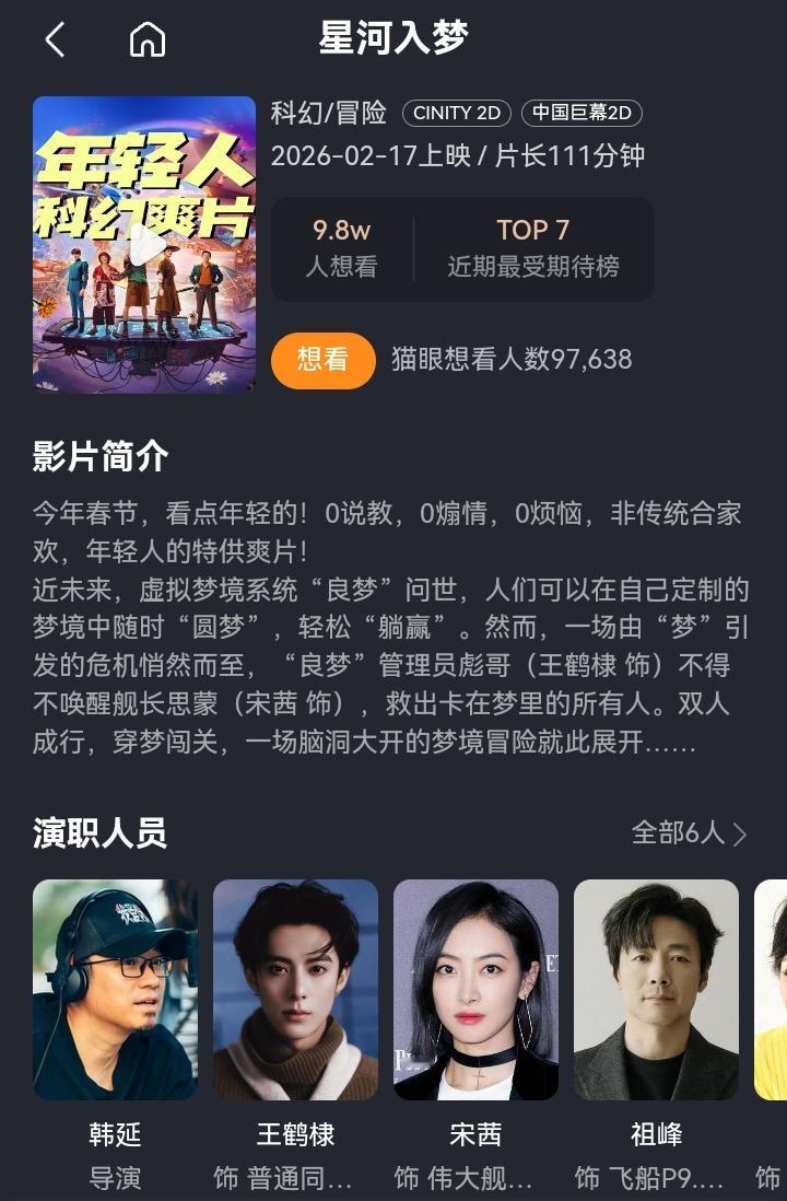 2026春节档彻底燃爆!截至除夕,预售总票房强势冲破4亿大关,多家影院黄金场次秒空,这波观影热潮直接拉满春节氛围感 ! 除夕正式开启春节档大战,6部种子选手同台竞技,喜剧、动作、科幻、动画全品类覆盖,精准适配所有人群 !想追喜剧的,有《飞驰人生3》领跑,韩寒式幽默承包全家笑点;爱科幻的,《星河入梦》穿梦闯关,视觉效果拉.;带娃家庭首选《熊猫计划之部落奇遇记》《熊出没·年年有熊》,亲子互动超欢乐 。 不用再纠结过年去哪玩,左手团圆饭,右手电影票,就是最惬意的打开方式!这份超全观影清单赶紧收好,总有一部戳中你。2026春节档 新年电影票房 2026跨年档 春节电影票房 2025票房榜 明年的票房 新春票房