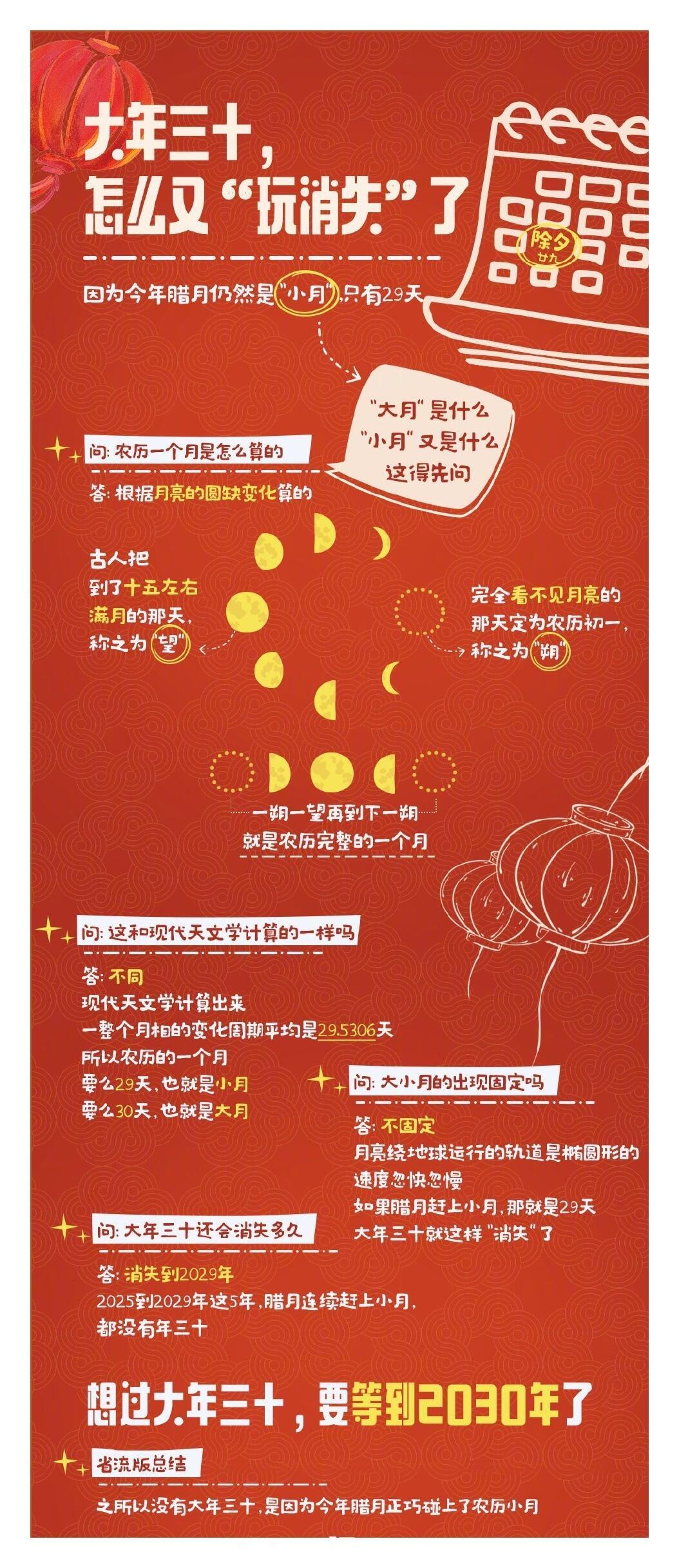 今年除夕为啥不是年三十农历的一个月平均周期约为29.53天,所以农历月分大月和小月,大月30天,小月29天;如果腊月正巧碰上农历小月,大年三十就没有了。