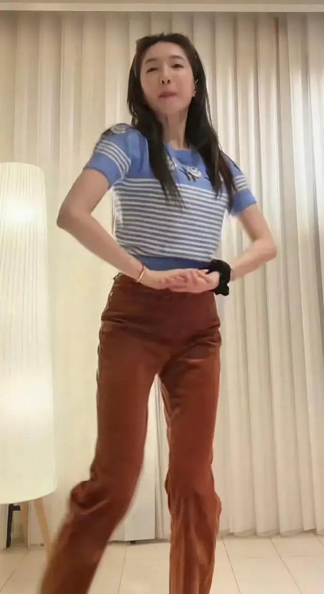 39岁江疏影跳手势舞:T恤+阔腿裤,减龄又高级,颜值依旧抗打