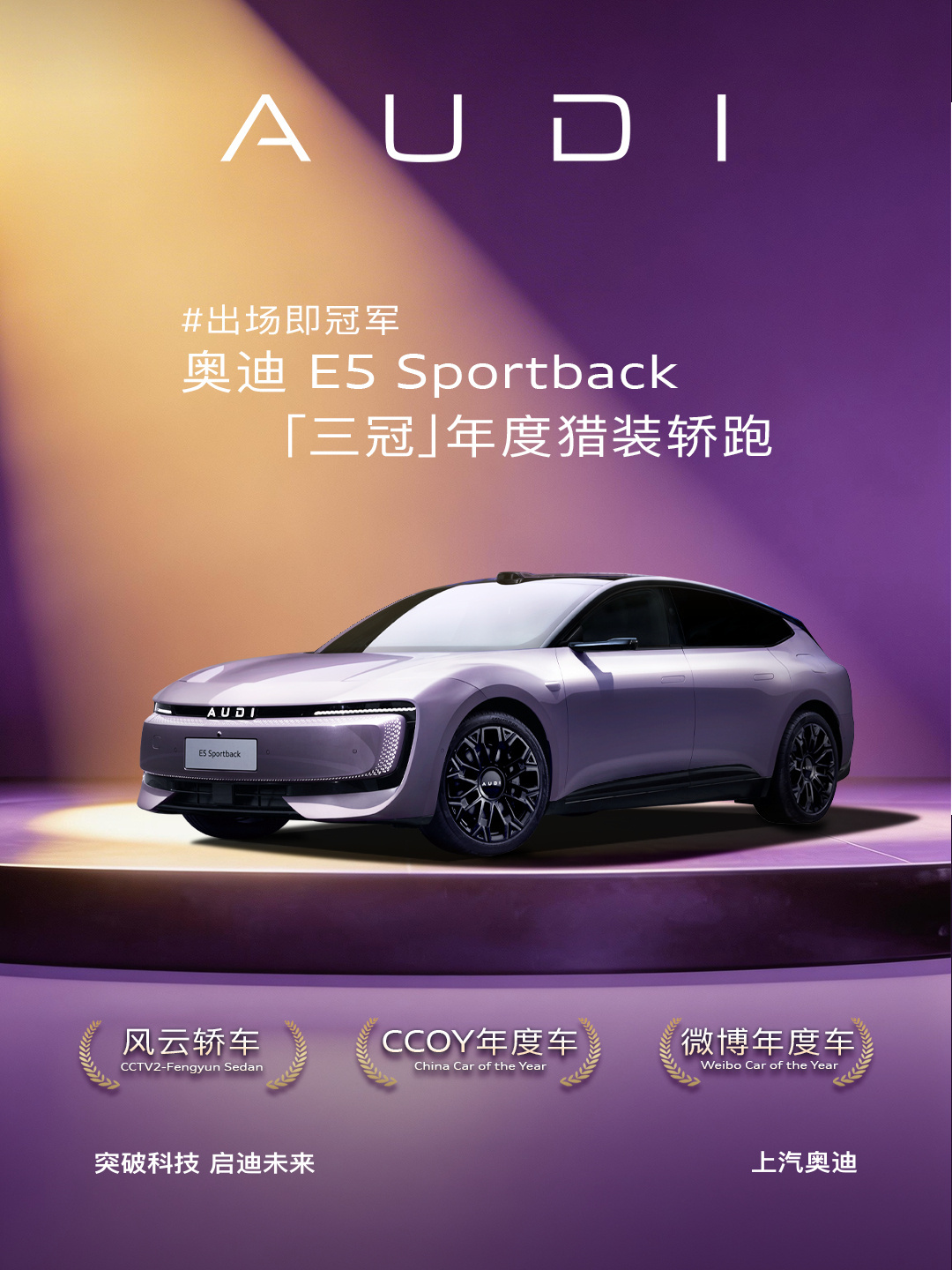 上汽奥迪E5 Sportback,拿了三个年度的汽车奖项。