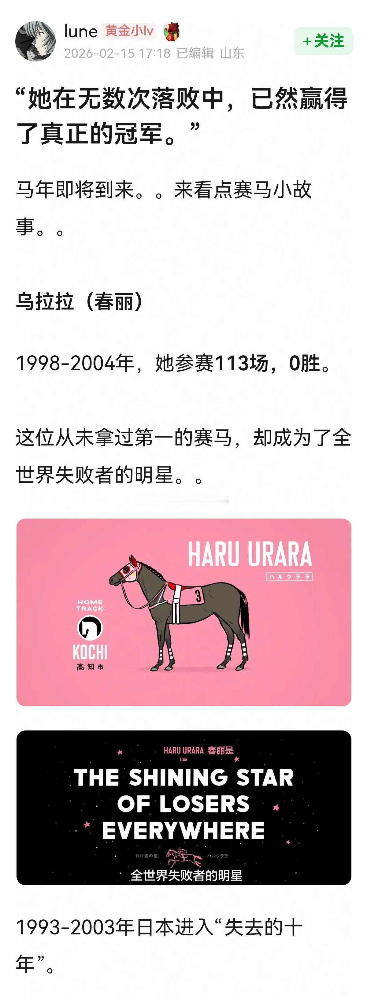 马年即将到来,来看点赛马小故事→“她在无数次落败中,已然赢得了真正的冠军。”