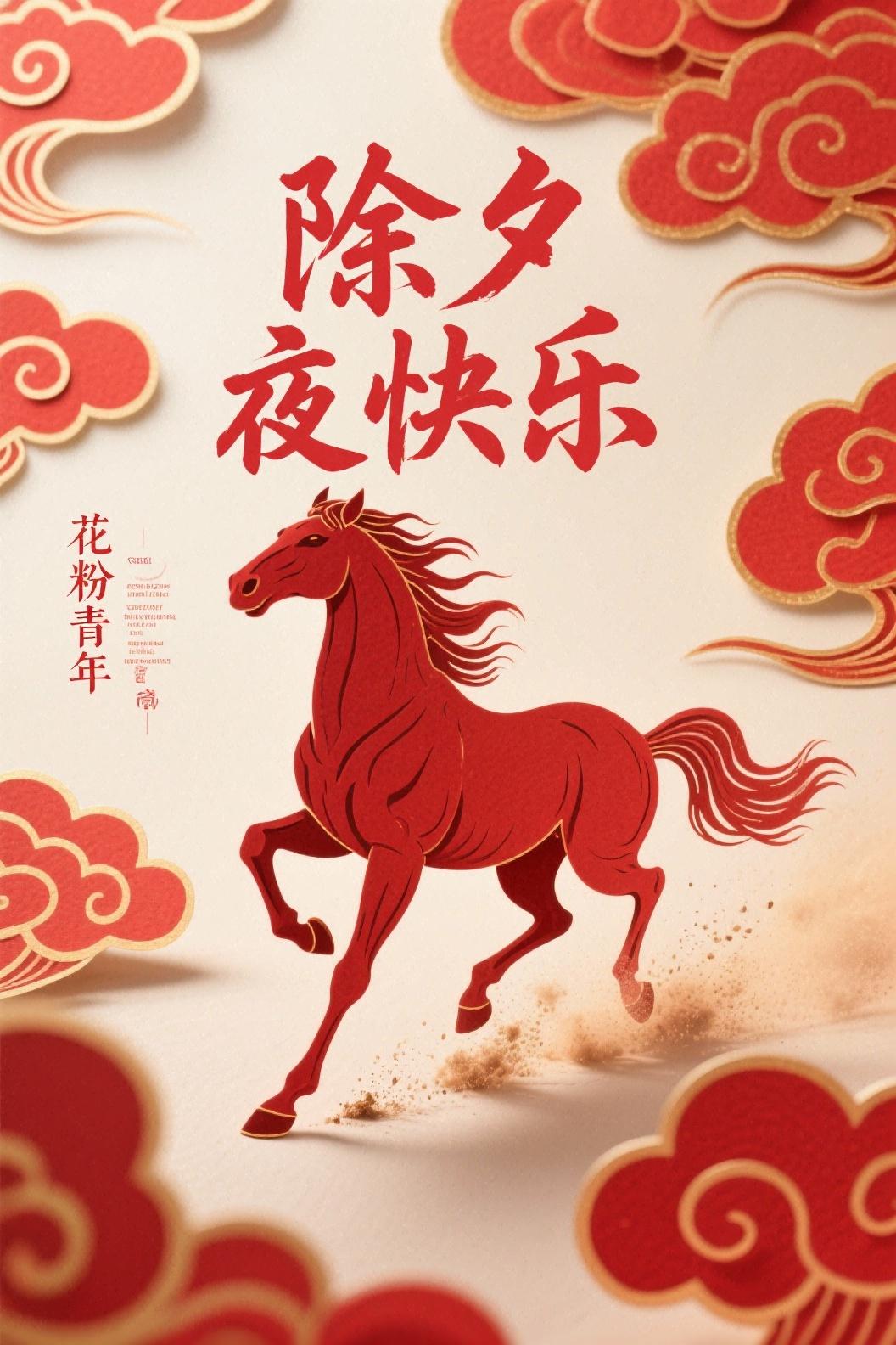 除夕的钟声即将敲响,愿这辞旧迎新的时刻为你带来一整年的好运!祝你新的一年里,烦恼像旧年的烟花一样消散,快乐像新年的爆竹一样绽放,幸福像除夕的饺子一样圆满。愿你事业马到成功,生活马上有钱,家庭美满幸福,身体生龙活虎。除夕夜,让我们举杯共庆,迎接一个充满希望和喜悦的马年!