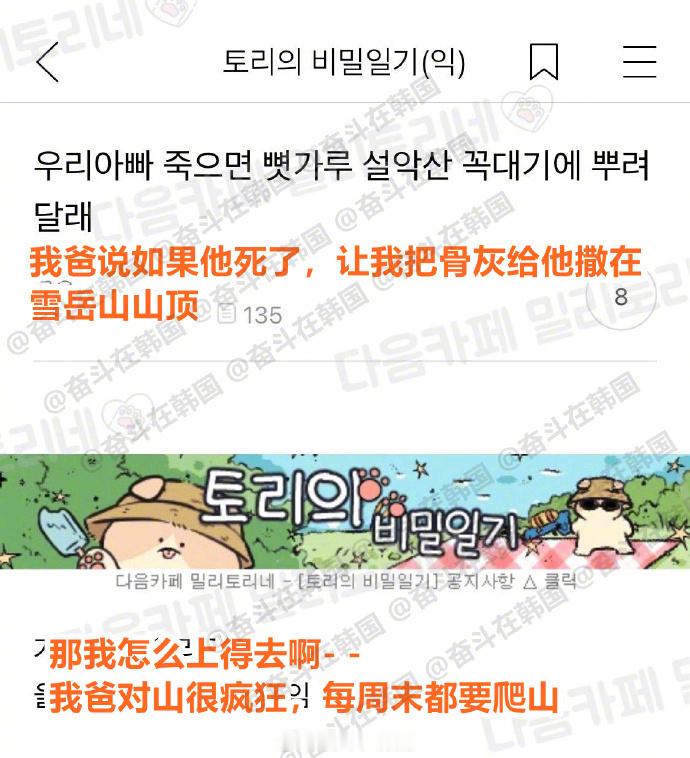 我爸说如果他死了,让我把他骨灰撒在雪岳山山顶 海外新鲜事 热点现场