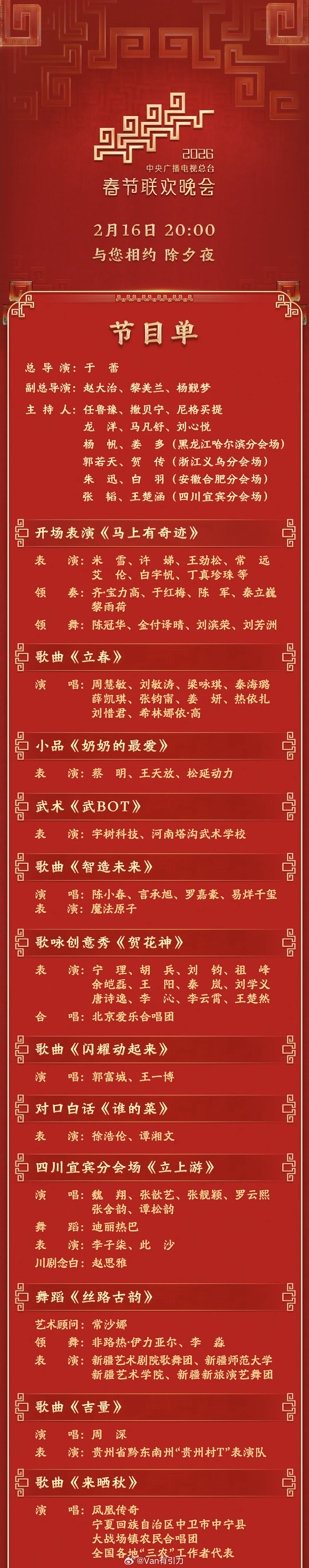 春晚节目单终于出来了,有多少朋友打算看全程?