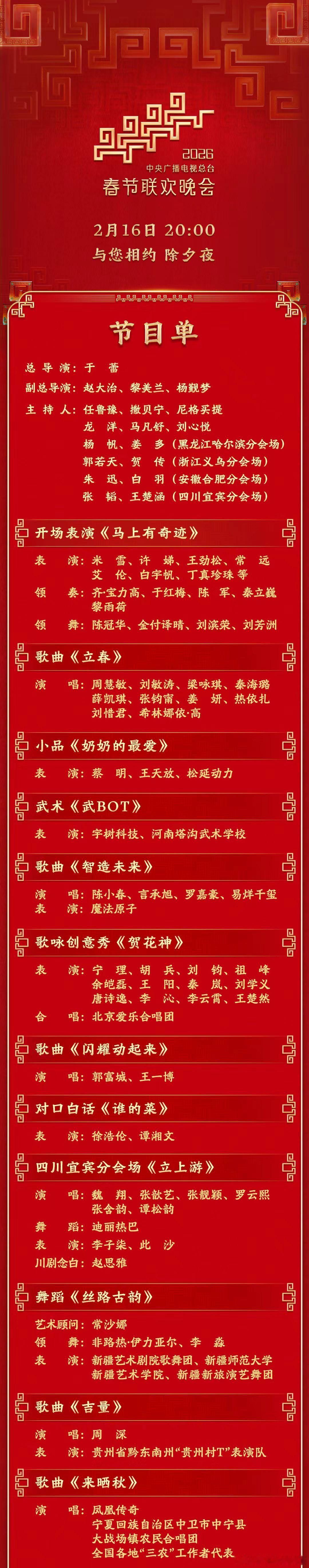春晚节目单春晚节目单放出来了,信息量直接拉满:你最想蹲哪一个节目?
