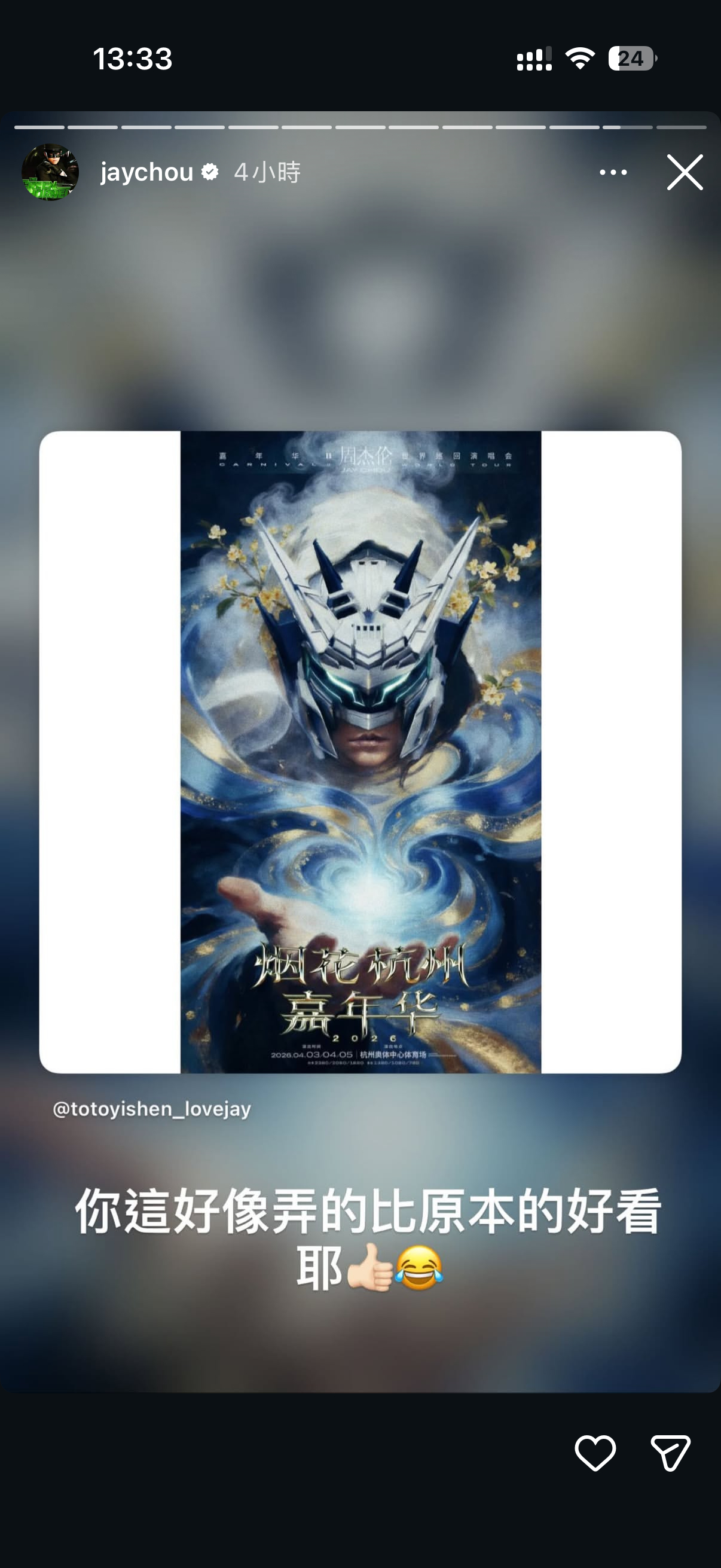 周杰伦夸赞新巡演海报二创:比原本的好看耶👍🏻😂