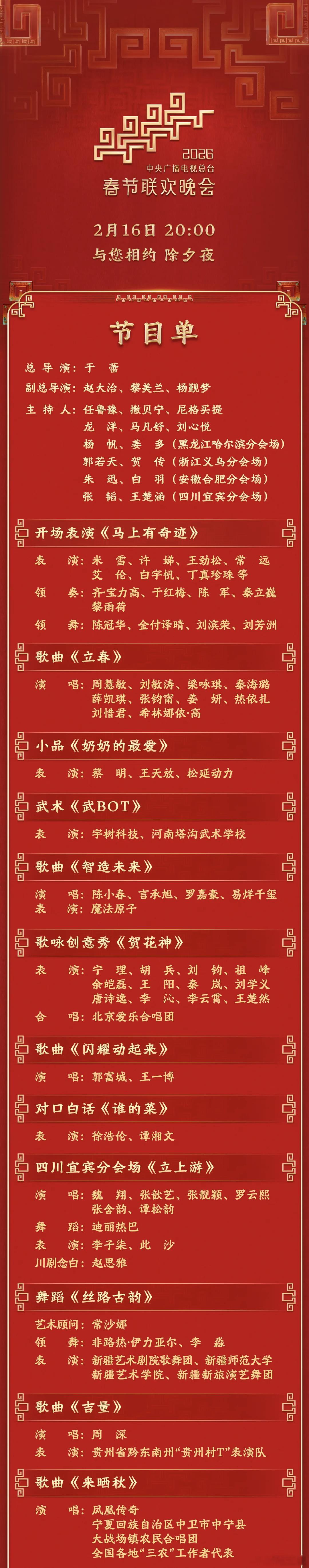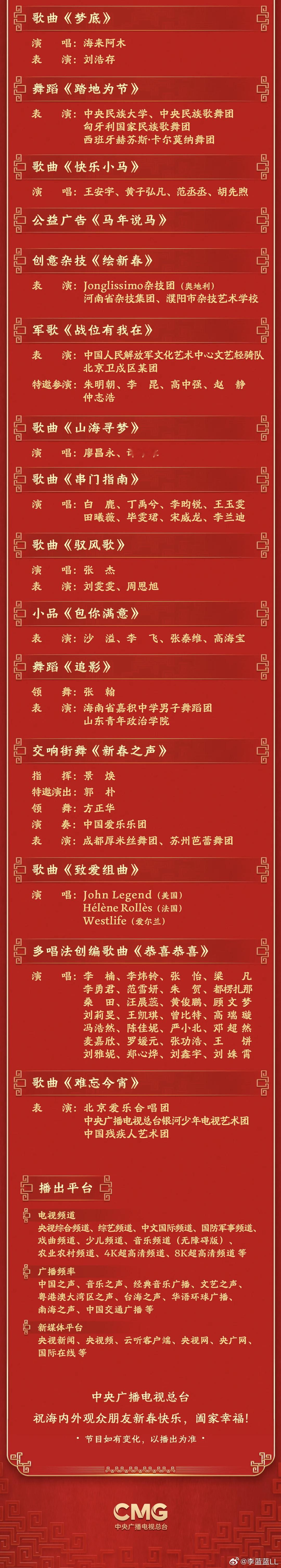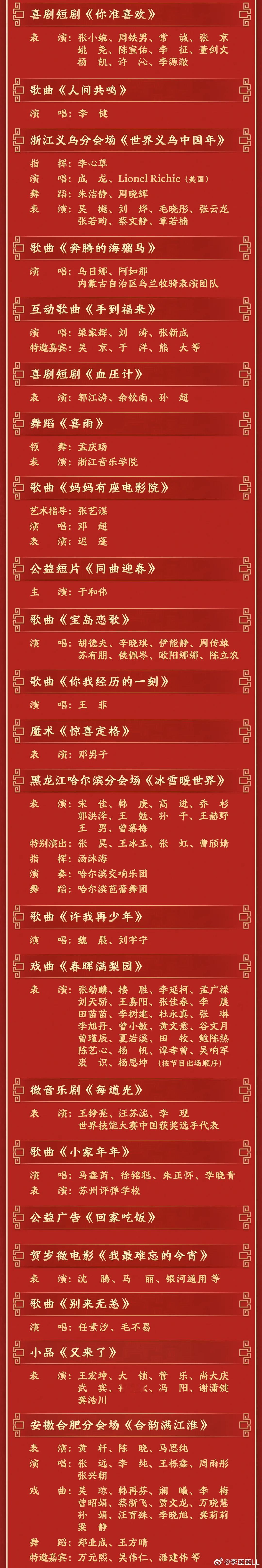 春晚节目单来啦。