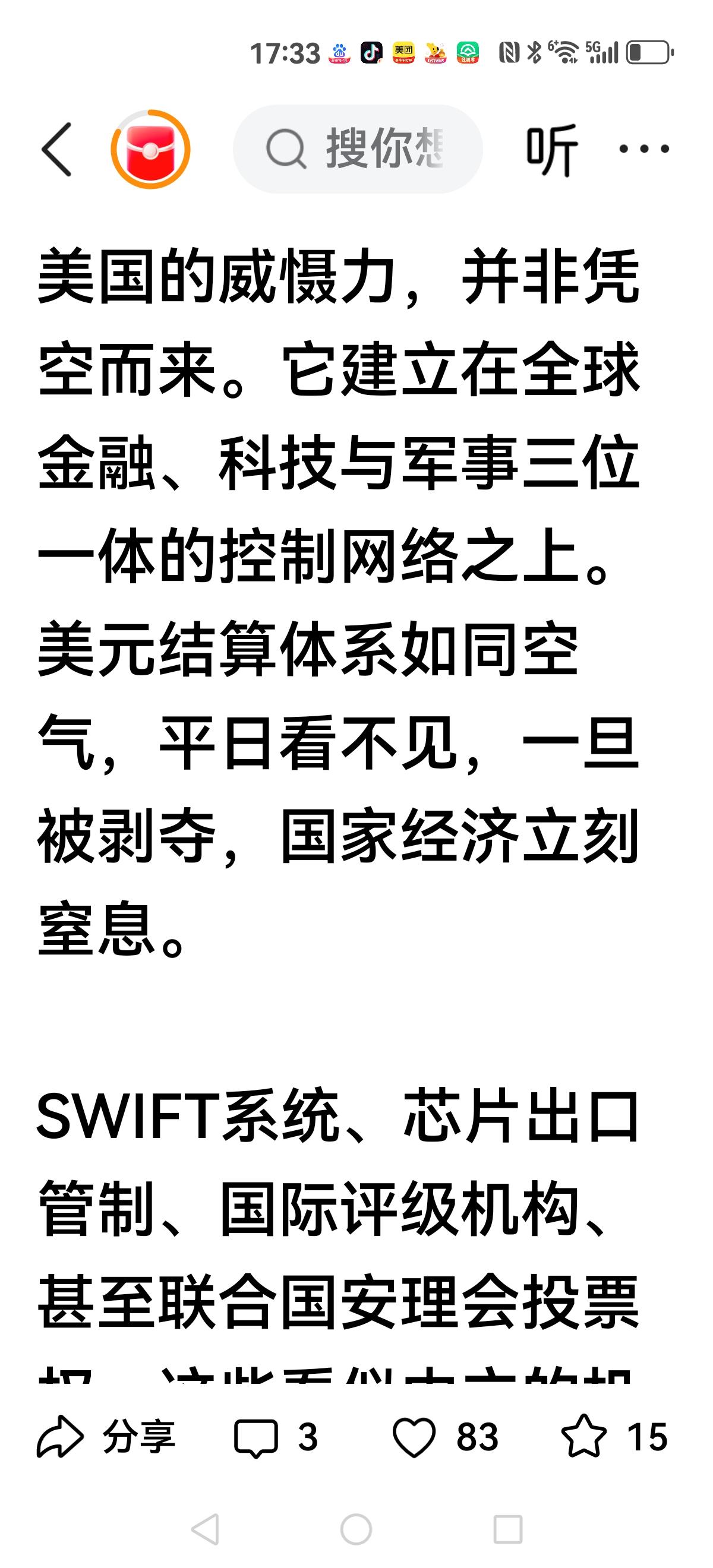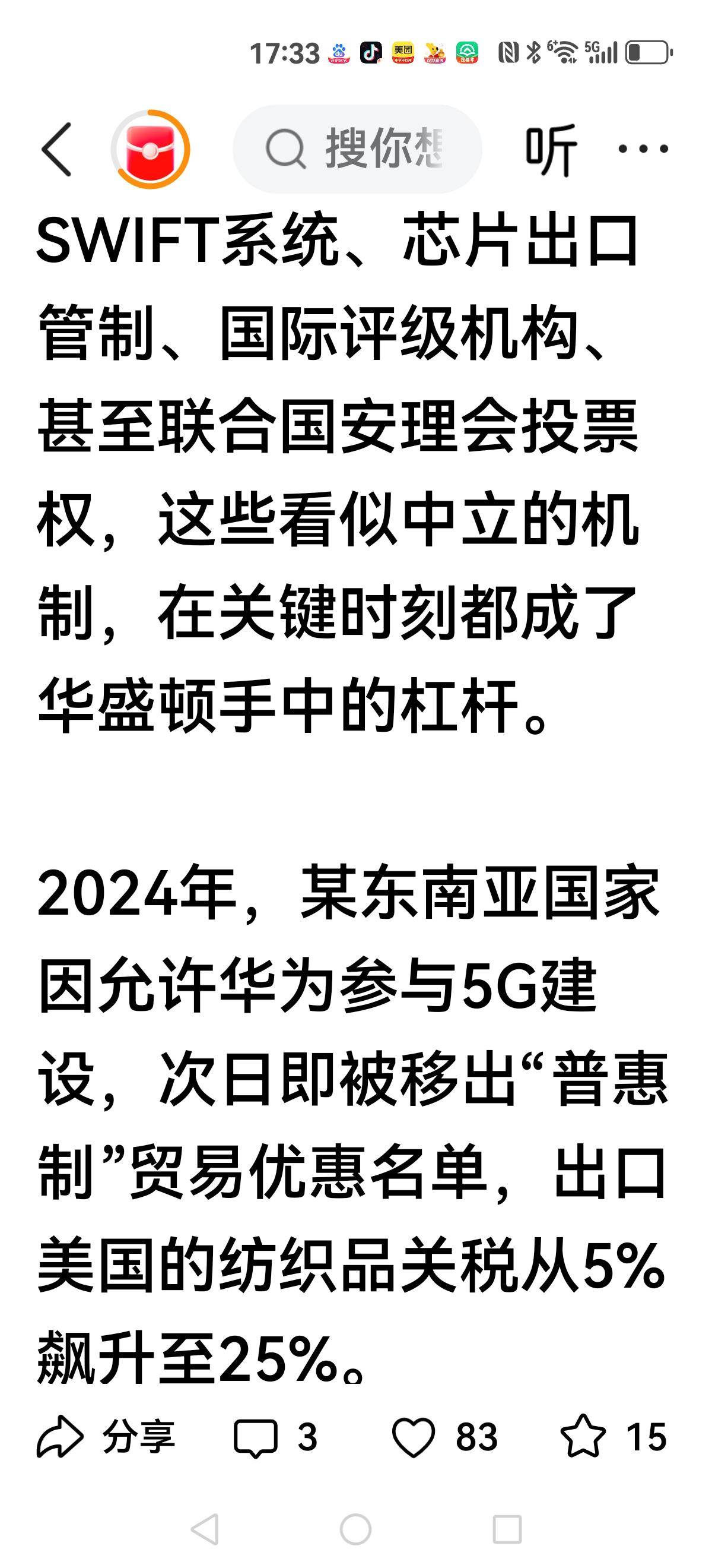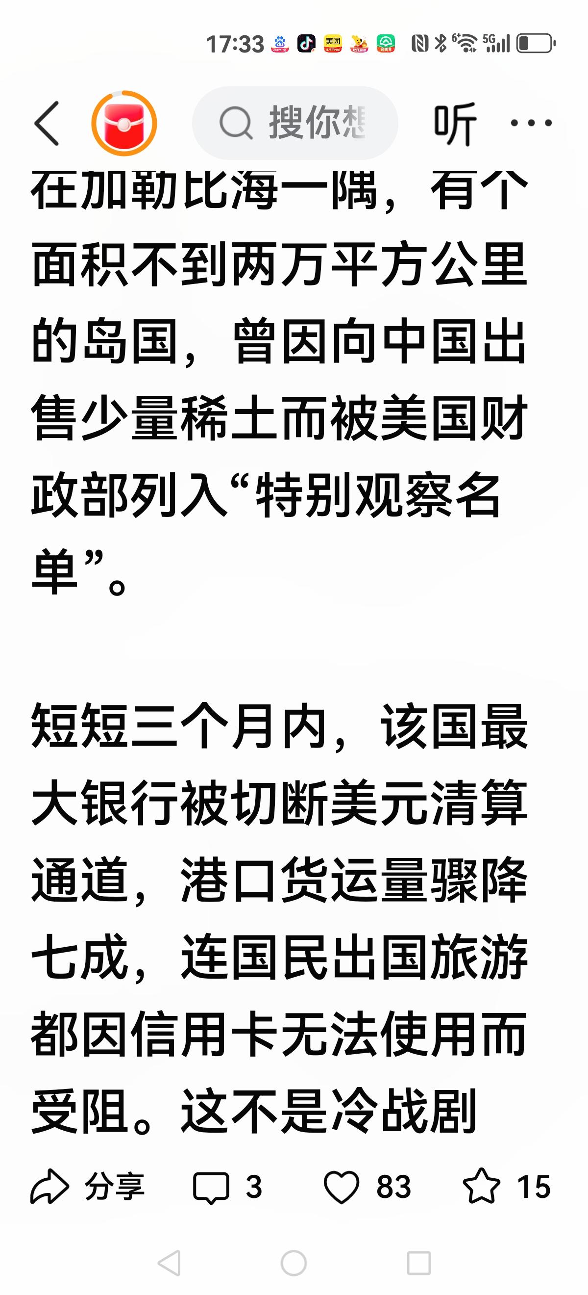 【一位美籍华人说:】 “之所以很多小国宁可得罪我们,也不愿意得罪美国,那是因为得罪美国后果严重,美国是一个睚眦必报的国家……” 在加勒比海一隅,有个面积不到两万平方公里的岛国,曾因向中国出售少量稀土而被美国财政部列入“特别观察名单”。 后面接到一连串打击报复。 美国有两大必杀器:取消最惠国待遇,踢出Swift系统。 很多小国经不起这两板斧的打压。