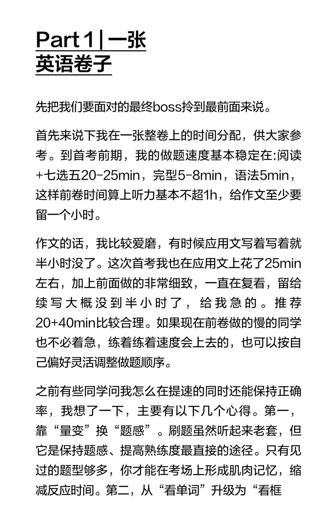 今天给大家做英语学习分享的X同学,在本次1月浙江高考中取得了145分的好成绩,是今年首考的英语单科状元。 阅读他的文字就会发现,他能拿第一,是某种偶然,但更像是某种必然。听力、阅读、七选五、完形填空、语法填空、写作 ——试卷上的每一道题,他都真真切切地思考与总结过。 他的分享十分细致,从如何积累到如何考试都回答得很“漂亮”。 受限于篇幅,这次先放【第一弹】,X同学是如何刷题+积累语料的?我们【第二弹】见! 指路:
