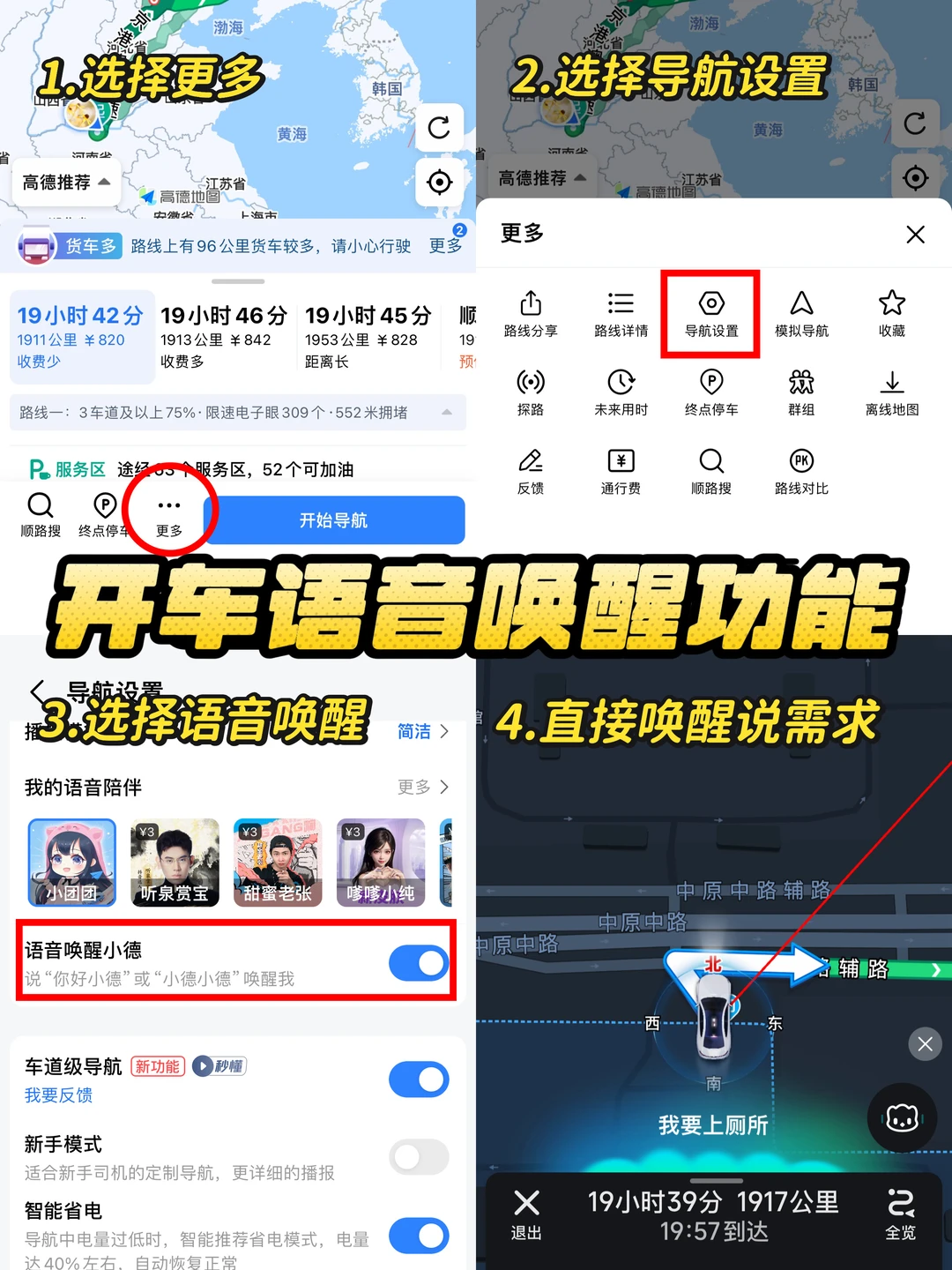 ✅功能5:打开语音功能,直接对话我想给车加油或者想上厕所