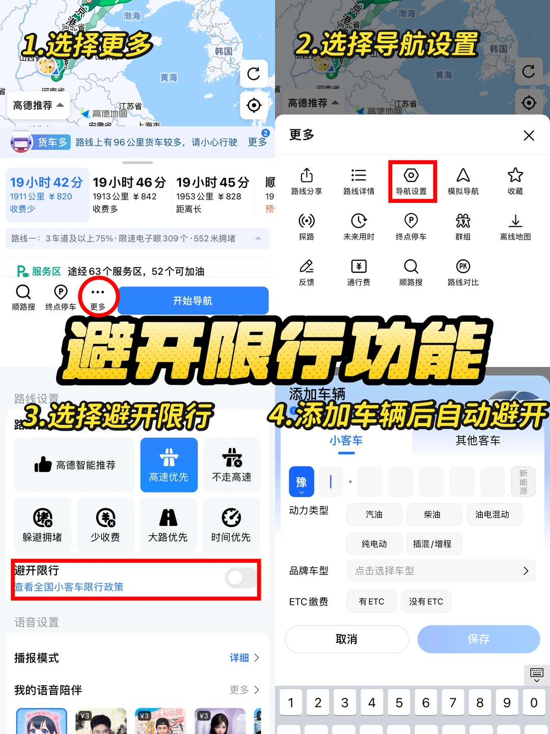 设置好后导航会自动给你避开限行的路线,再也不用担心回到家有罚款