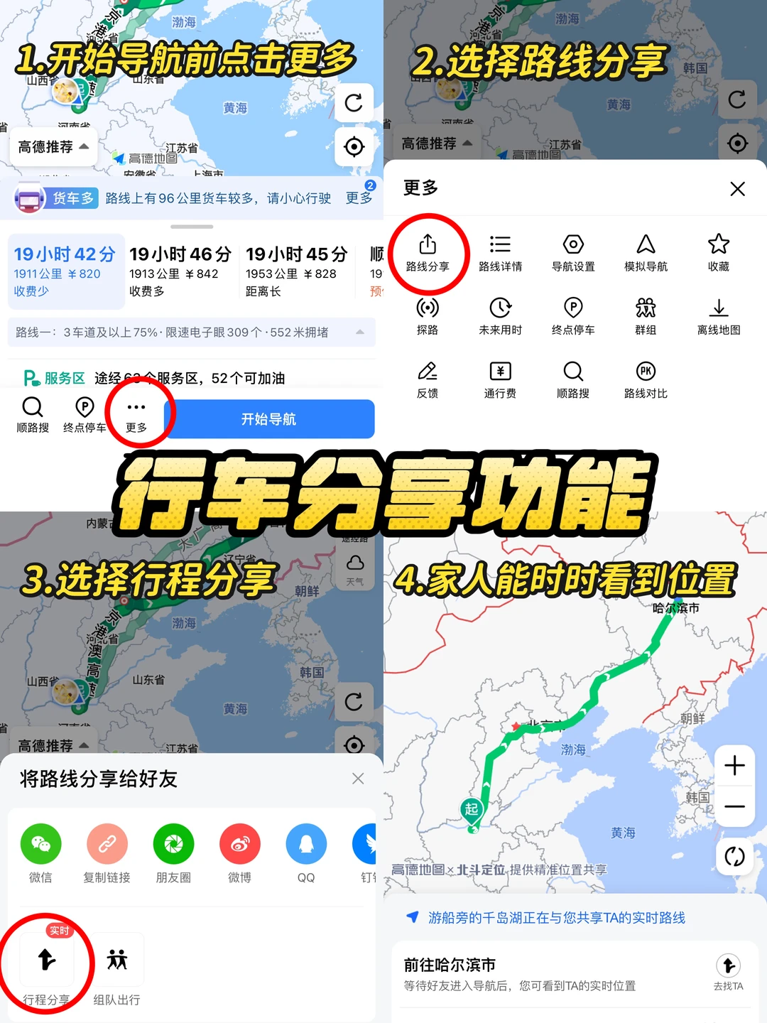 家人随时点开都能看到你走哪了,距离他还有多远,行程结束后定位自动结束,也不用担心自己的隐私。另外如果真的有意外,家人也能通过你的位置帮你报警