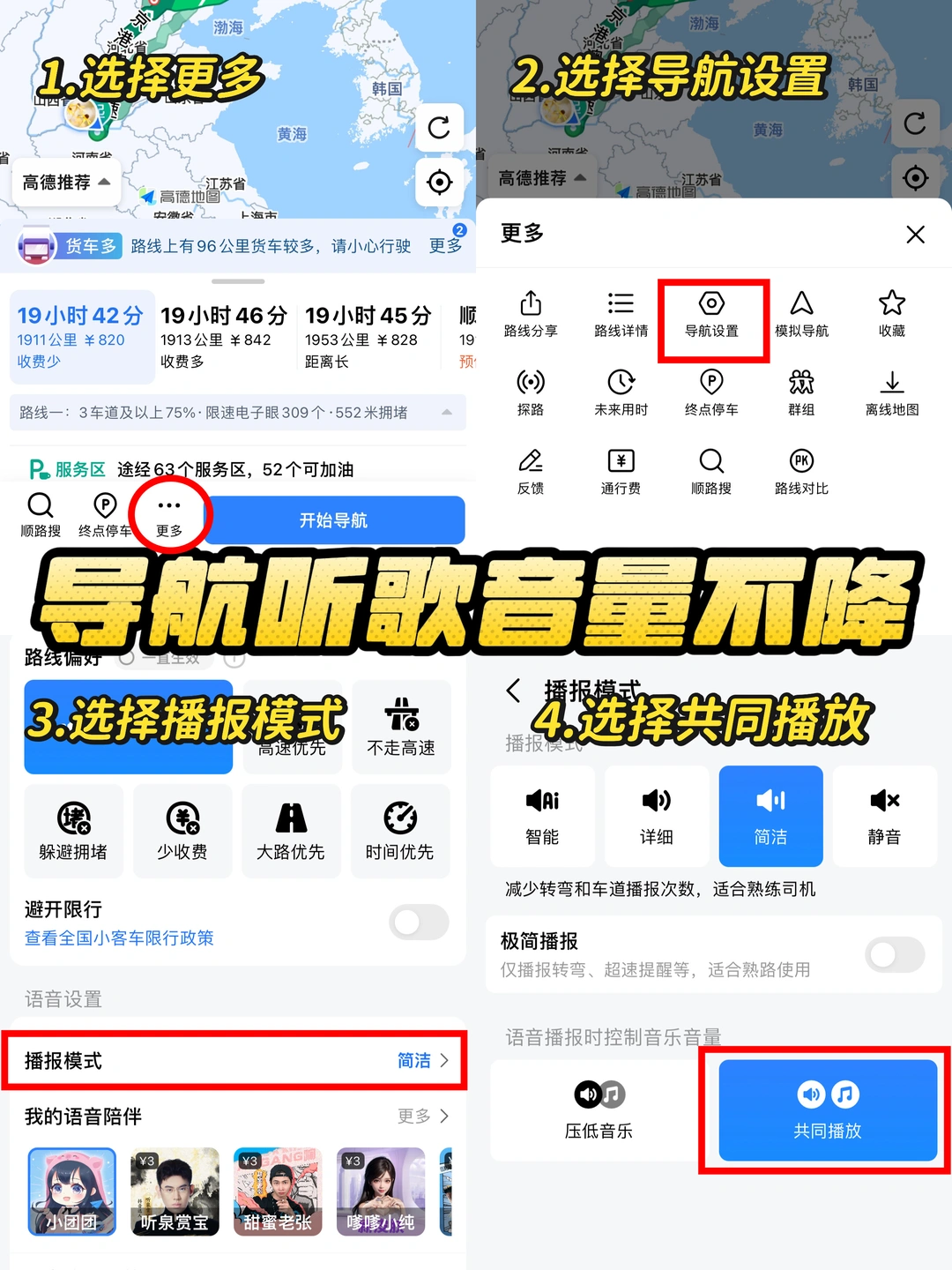 ✅功能2:设置导航播报音乐声音不减小,再也不担心导航影响听歌啦