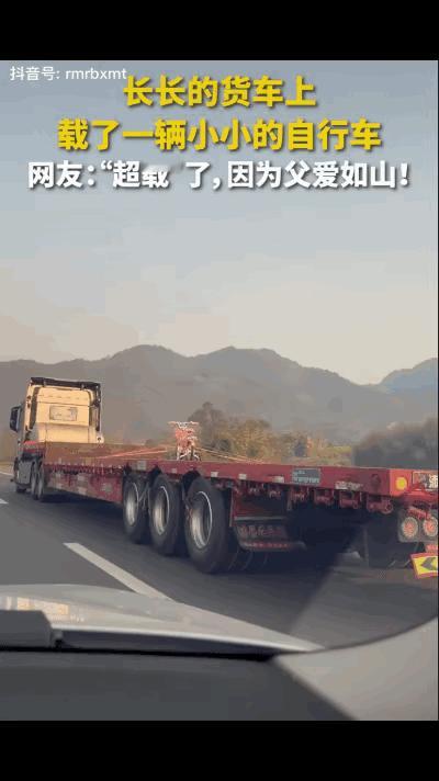 “没想到上人民日报了!”近日,一辆大货车只拉一辆自行车,这暖心的一幕冲上热搜,网友留言:“超载”了,因为父爱如山。 2月13日,重庆铜梁,有网友拍到的视频里,一辆红色的重型半挂车,焦急的行驶在路上,在车厢的正中央,捆绑着一辆粉色儿童自行车。 这强烈的视觉反差,让人第一眼想笑,第二眼却鼻子酸酸的。 重型半挂车的额定载货量以吨为单位,车厢空间足以容纳数十吨常规货物,跑干线运输的货车司机,每一趟行程都要精打细算,空车行驶会直接产生油费、过路费与车辆损耗,这些成本都会挤压本就微薄的运营利润。常年跑货运的人都清楚,空驶一公里,都是在消耗实打实的辛苦收入,没人会轻易做这样的选择。 这位重庆铜梁的货车司机,一年里有超过三百天奔波在各地公路上,货运时效、路况安全、货物完好是他日常最在意的事,陪伴家人的时间被压缩到最少。孩子的成长瞬间他常常错过,孩子随口提起的粉色自行车,他却一直记在心里,没能及时兑现的小小心愿,成了他藏在心底的牵挂。 完成年前最后一趟常规货运任务后,他放弃了就近配货的机会,第一时间购置了孩子期待已久的自行车。他站在空旷的车厢里反复调试摆放位置,用高强度绑带将车身层层固定,确保行驶途中不会出现晃动与刮擦。偌大的车厢只放一辆小小的自行车,画面看起来格外不协调,他却不在意旁人的眼光,只专注于把这份礼物完好地带回家。 行驶在路上的他,油门与方向盘的操控里,多了几分归家的急切。常年握方向盘的手掌布满老茧,绑紧自行车的动作却格外细致,这份反差里,藏着一个父亲最直白的温柔。他不是不计较空驶的成本,是在孩子的心愿面前,所有的经济考量都变得不再重要。 路过的拍摄者第一眼看到画面,只觉得违背货运常理,等想通背后的缘由,心里瞬间被暖意包裹。这段没有滤镜、没有剪辑的实拍视频,没有刻意营造煽情氛围,却凭借最真实的举动,戳中了无数网友的内心。 视频在社交平台发酵后,很快获得人民日报的关注与报道,官方平台没有添加多余修饰,只将这份平凡的父爱完整呈现。网友们纷纷留言共情,大家口中的“超载”,从来不是交通违规的表述,是这份爱意已经多到超出了车厢的承载量。 货车司机群体是城乡物流运转的核心力量,他们常年风餐露宿、昼夜兼程,用奔波撑起家庭生计,也把对家人的亏欠与牵挂,化作一件件实在的礼物。不少重庆本地的货车司机都有类似经历,有人千里迢迢带孩子爱吃的零食,有人空车捎带家人的生活物品,他们不擅长说暖心的话语,所有的疼爱都落实在具体行动里。 我们总在刻意寻找震撼人心的感动,却常常忽略生活里最朴素的美好。巨大的货运车厢与小小的儿童自行车,一边是养家糊口的责任,一边是牵肠挂肚的亲情,两种身份的碰撞,勾勒出普通人最真挚的生活模样。 父爱从不需要宏大的宣言来证明,它藏在空车行驶的选择里,藏在反复固定绑带的细节里,藏在一路奔赴家门的急切里。这辆红色半挂车这一趟运输,没有货运单,没有运输费,却载着最珍贵的思念与期待,驶向充满烟火气的家。 生活里最珍贵的温暖,从来都不是惊天动地的壮举,是平凡人用自己的方式,把爱藏进每一个细碎的选择里,让普通的归途,变成最动人的旅程。 各位读者你们怎么看?欢迎在评论区讨论。