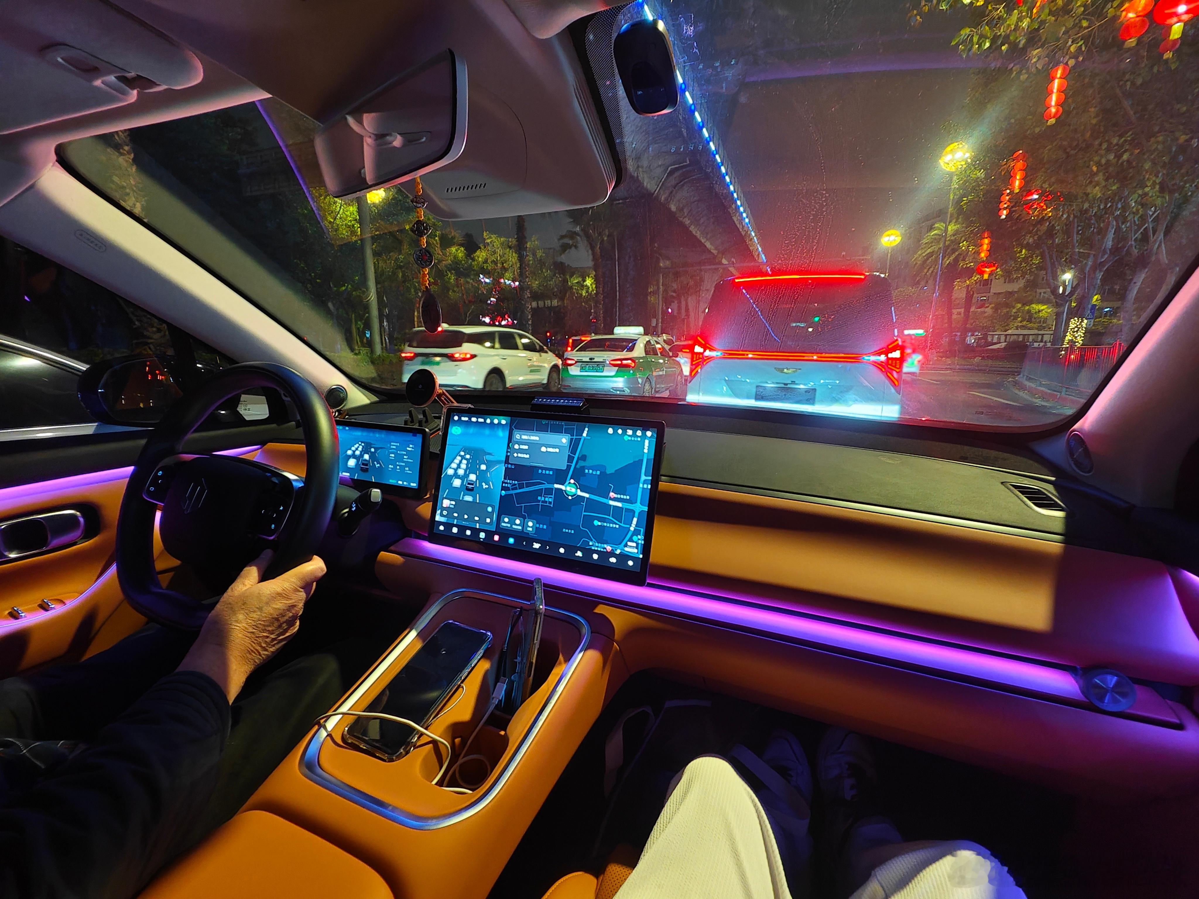 出门吃年夜饭,零跑C16这氛围灯还不错