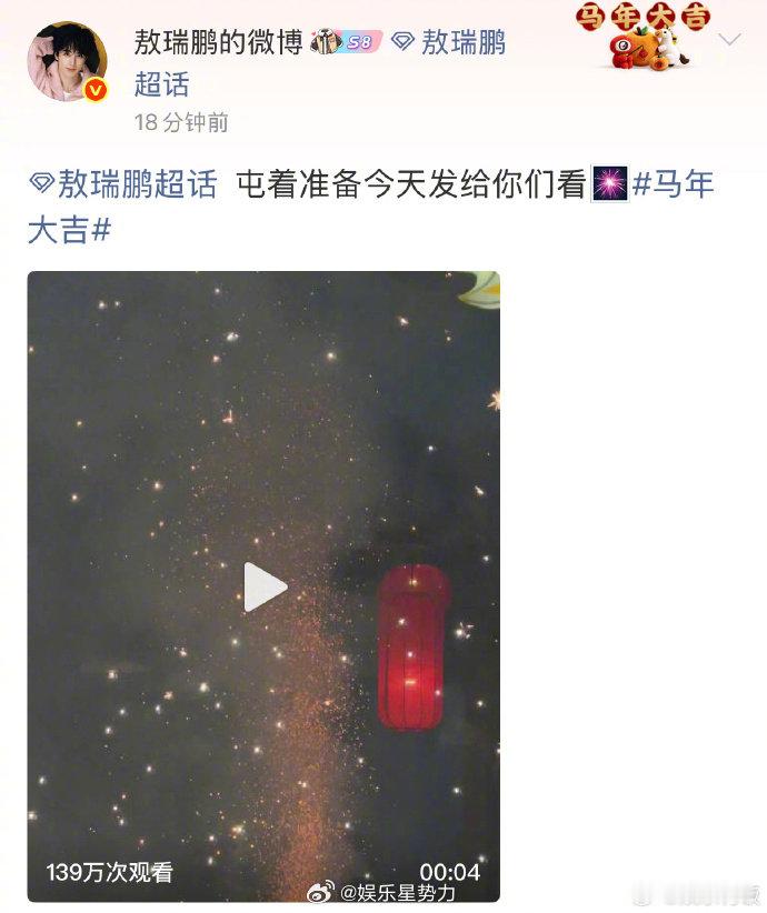 敖瑞鹏除夕固定节目发红包晒烟花 敖瑞鹏除夕固定节目上线,发红包晒烟花仪式感满满,每年都宠粉,认证为暖心担当。