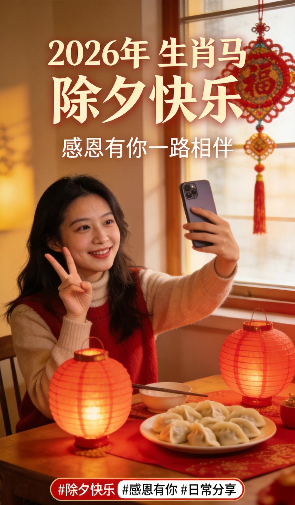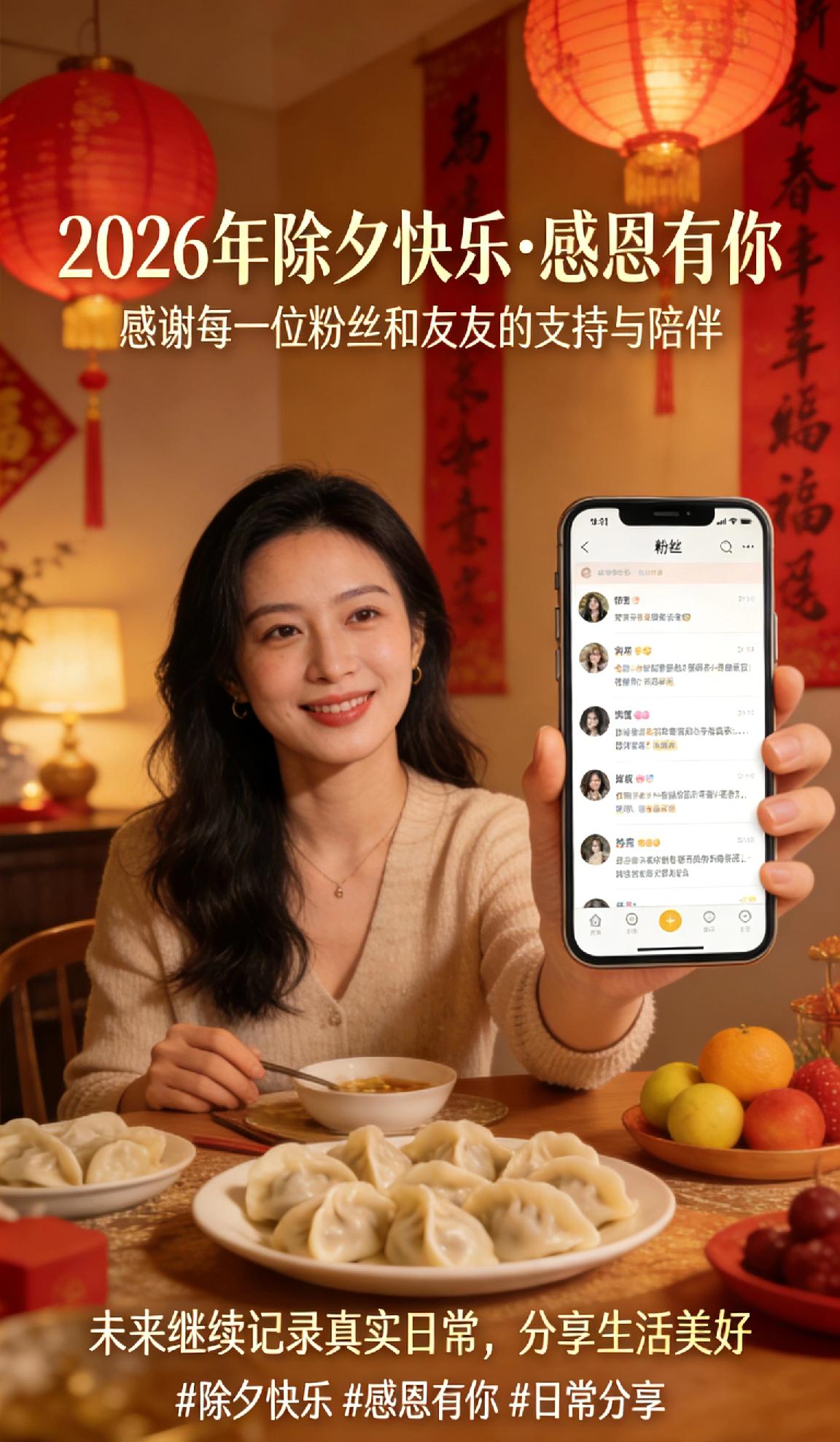除夕快乐,感恩有你一路相伴 今天就是除夕啦!在这个辞旧迎新的时刻,能和你们一起度过,是我最开心的事~ 感谢每一位粉丝和友友这一路的支持与陪伴,是你们让我的分享有了意义。未来也会继续记录真实日常,把生活的美好分享给大家。 祝你和家人除夕快乐,阖家团圆,天天开心! 除夕快乐 感恩有你