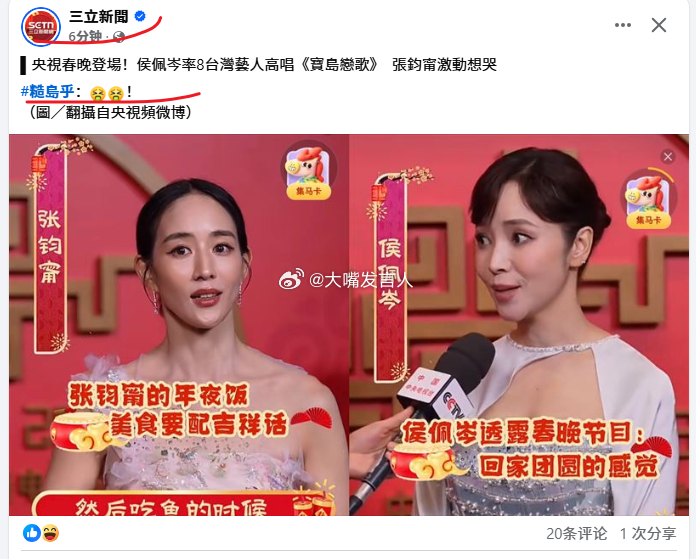 台北的演员要上今年的春晚,蛙岛的绿蛙媒体,心里止不住的酸水